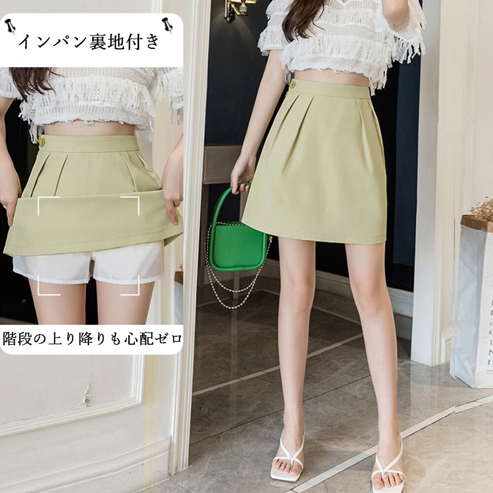 インナーパンツ付 Aライン ハイウエスト miniスカート 無地 韓国ファッション 大人かわいい ショート丈スカート脚長
