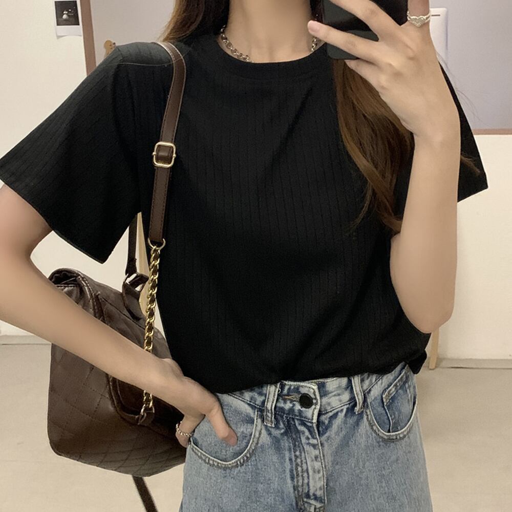 ラウンドネック ゆったり カットソー 韓国ファッション 薄手 ニット シンプル 着やせ トップス 部屋着 プルオーバー