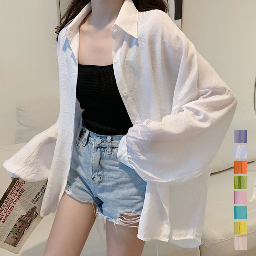 シアーカーディガンレディース シフォン ドルマンカーデ UVケア 長袖トップス 冷房紫外線対策 シャツブラウス 無地 白