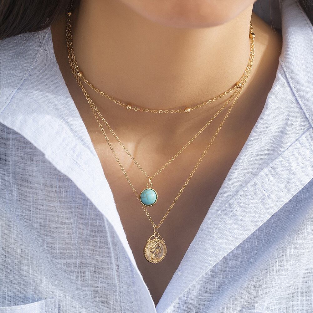日々のコーデにお洒落感をアップする3点セットになったチェーンネックレス