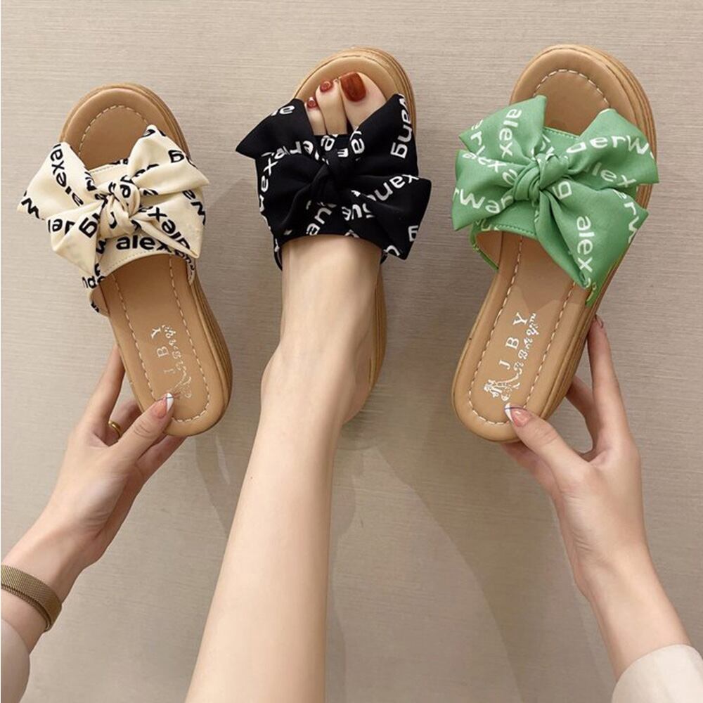 大きい蝶結び付きの太め一字型甲ベルトは足元をより華奢に引き立つ