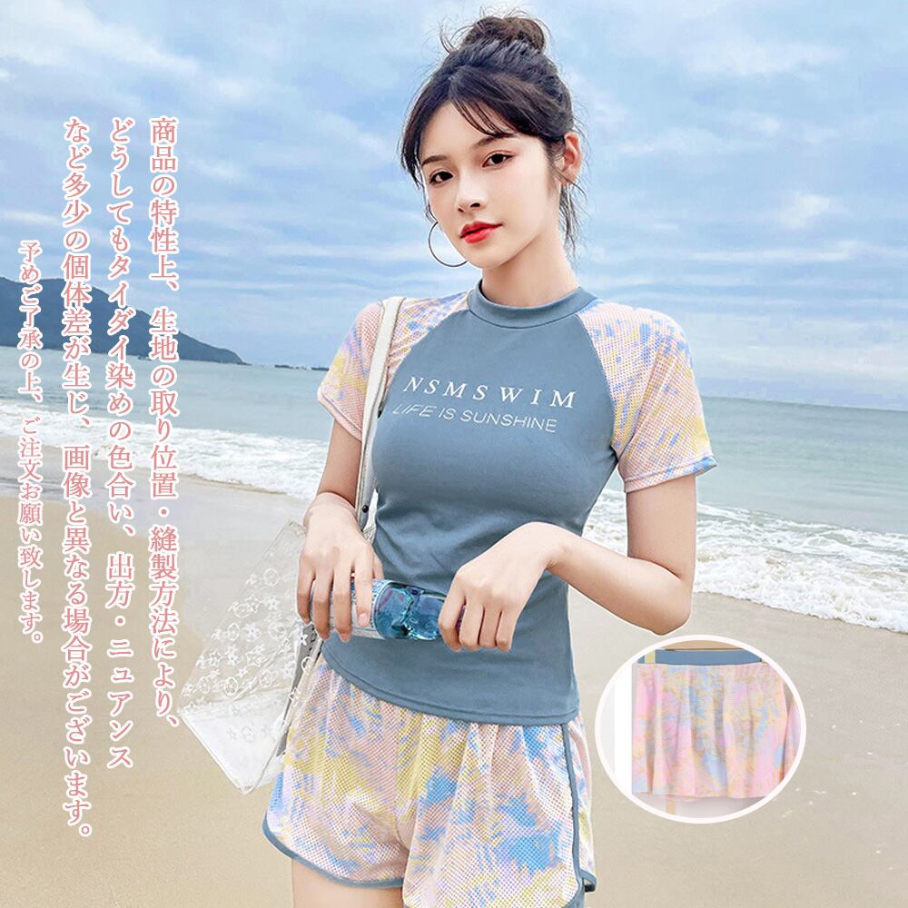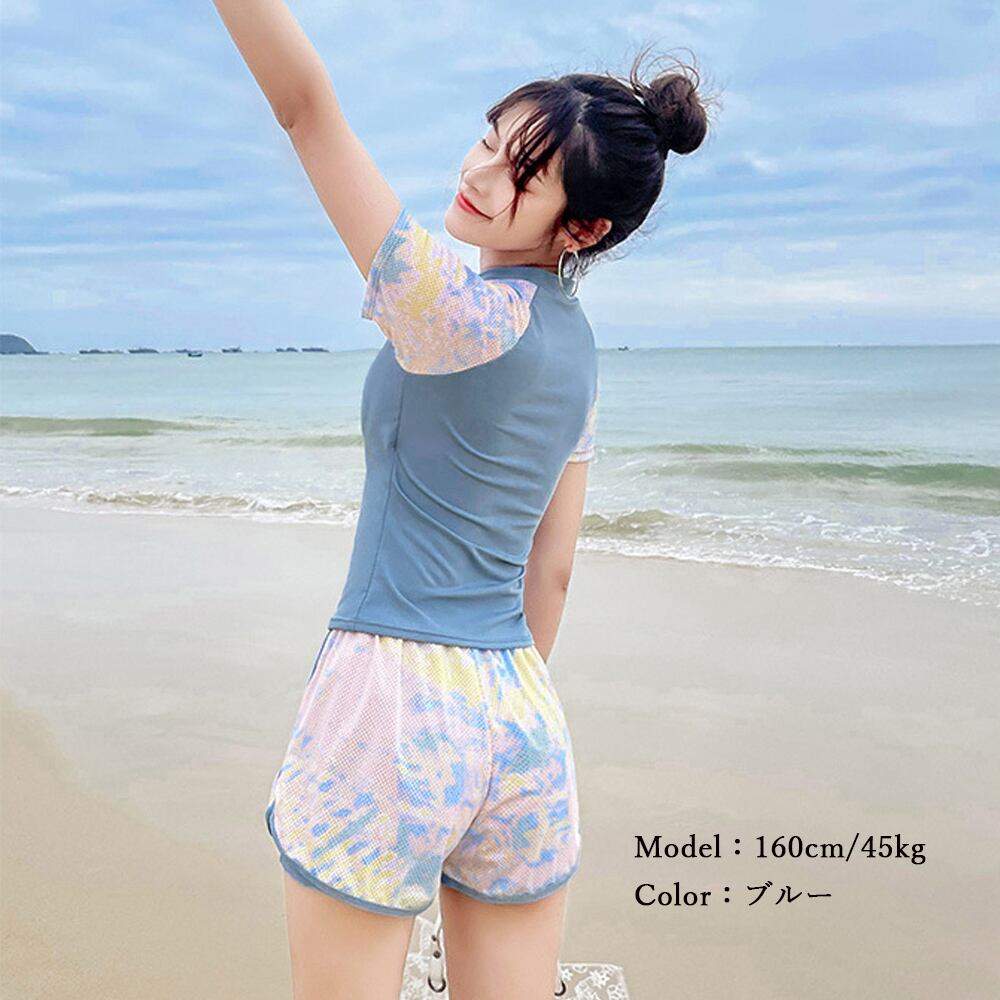 水着 韓国 フィットネス 水着 オトナ女子 半袖 長袖 ラッシュガード 上下セット かわいい 水着2点セットスイムウェア