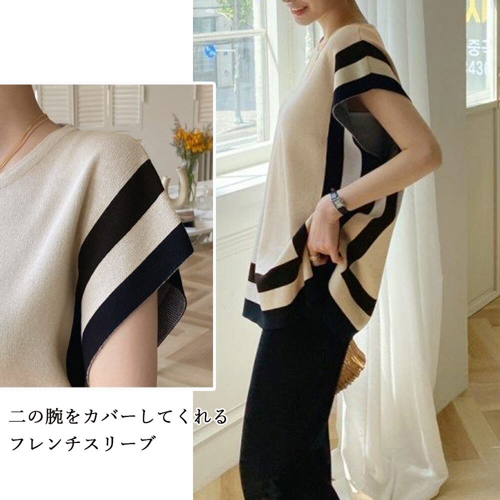二の腕をカバーしてくれるフレンチスリーブニットトップス