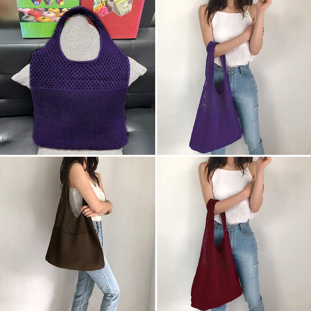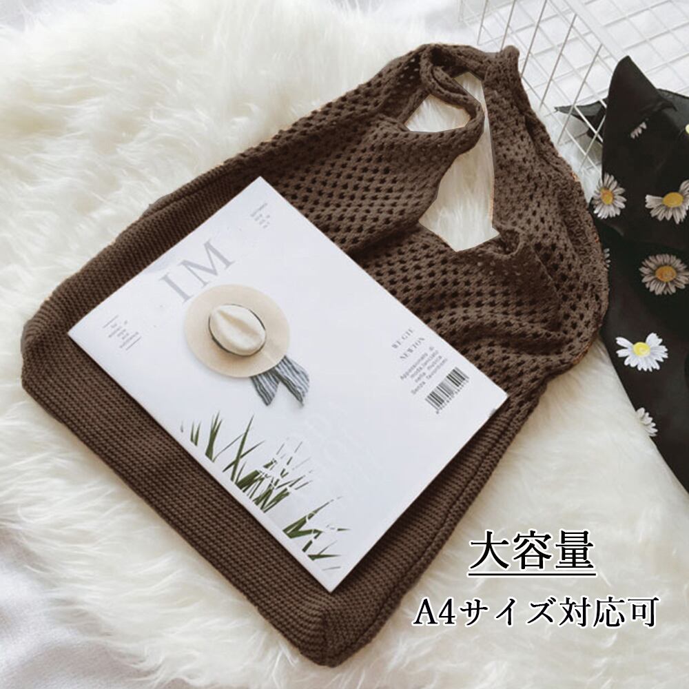 レディース  クロシェ編み 肩掛けバッグ 大容量 a4対応 ニットバッグ  無地シンプル ナチュラル 19色展開 韓国風