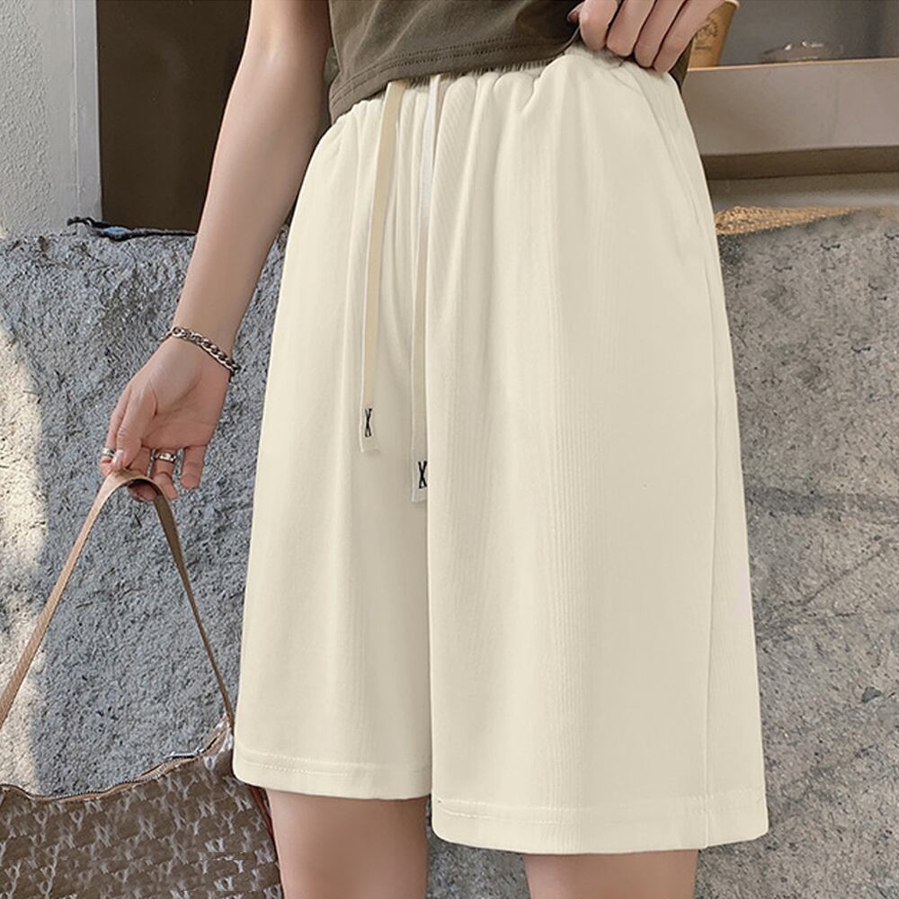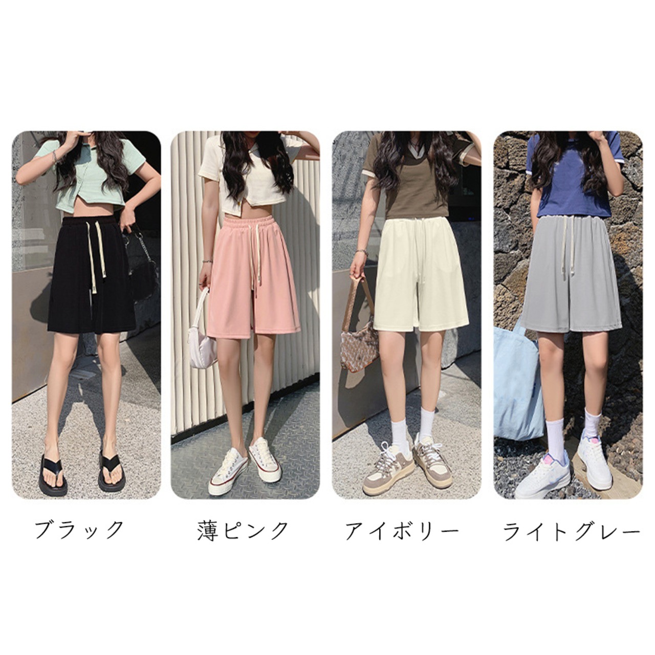 全4色 夏 ハイウエストパンツ ショート丈 ウエストゴム 着やせ 韓国風 リラックス ランニング 運動
