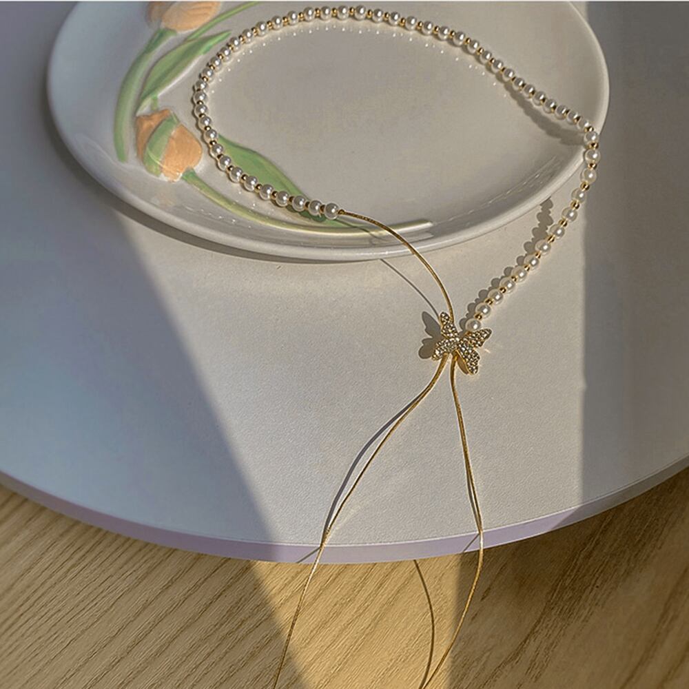 異素材mixネックレスパーティー蝶々華奢