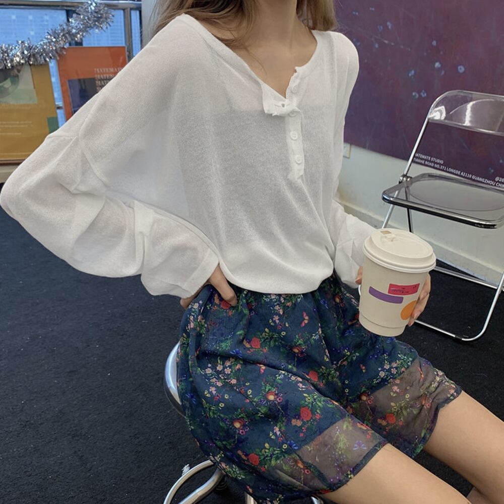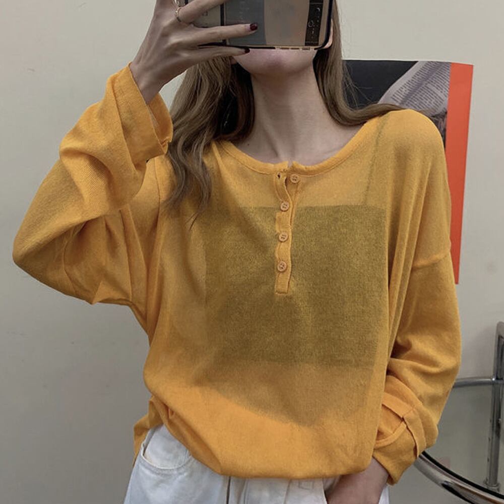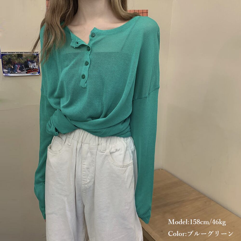 レディース 紫外線対策 ゆったり シアートップス フロントボタン ドロップショルダー透け感 薄手 プルオーバー