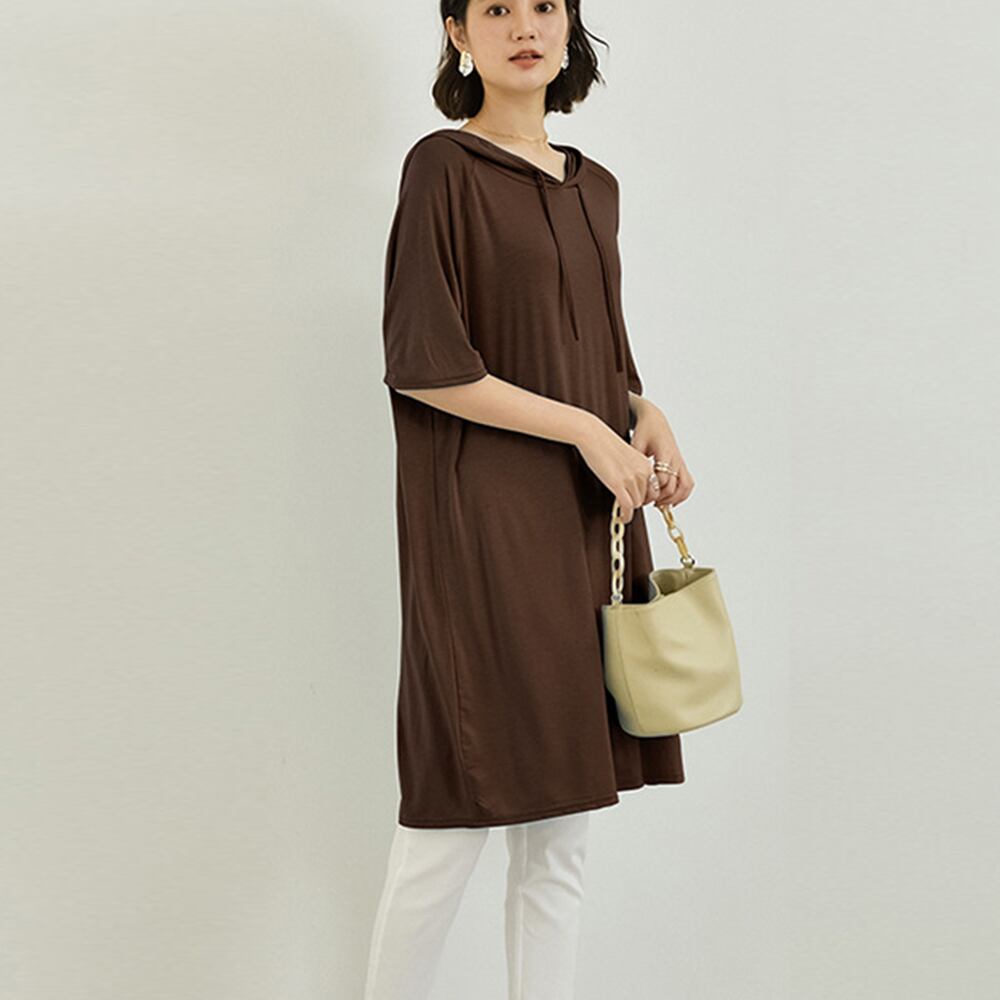 トレンド感のあるゆったりシルエットでおしゃれに体型カバー、tシャツワンピ感覚で着こなせます