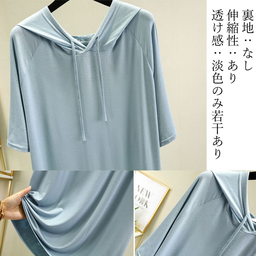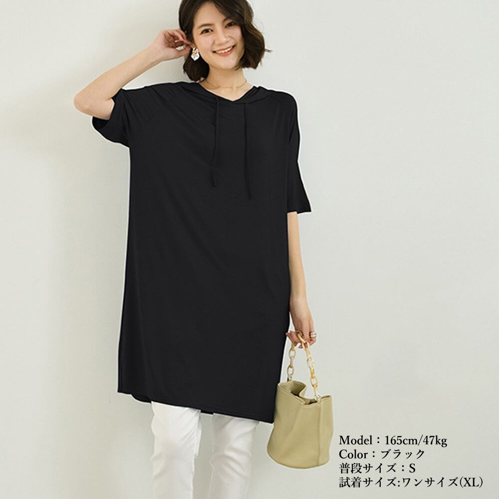 ロングtシャツ 半袖 フード付き tシャツワンピ トップス レディース プルオーバー 体型カバー ゆるシルエット 可愛い
