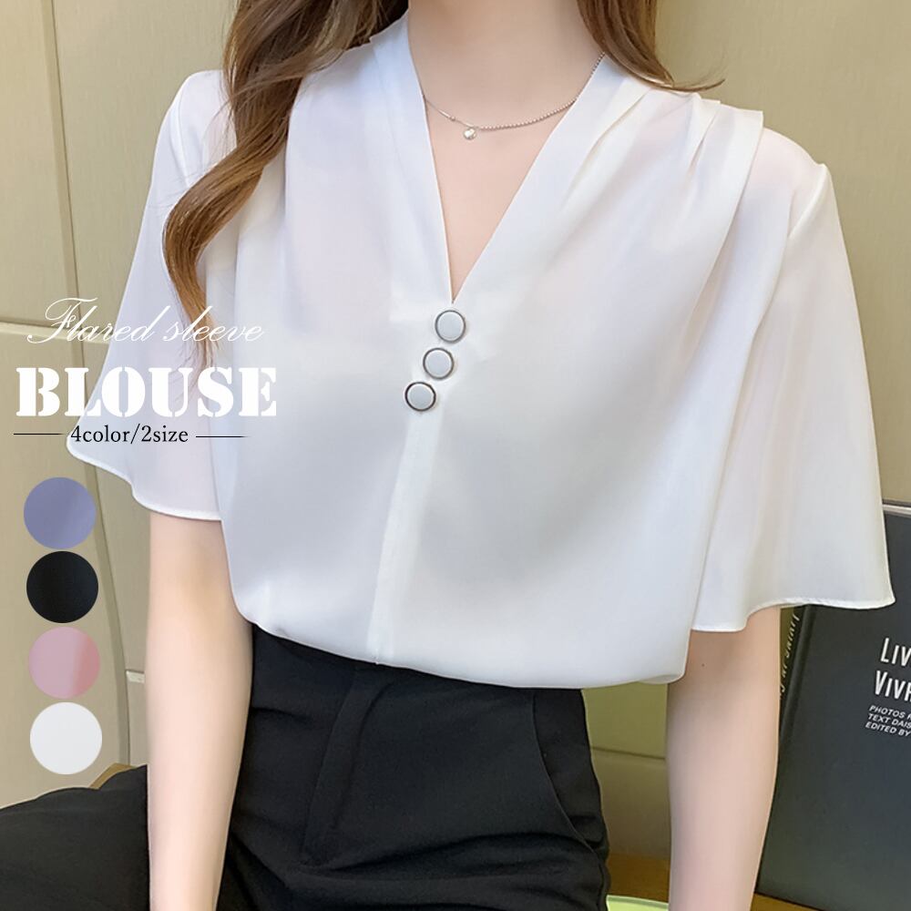 フレアスリーブ ブラウス 半袖レディース