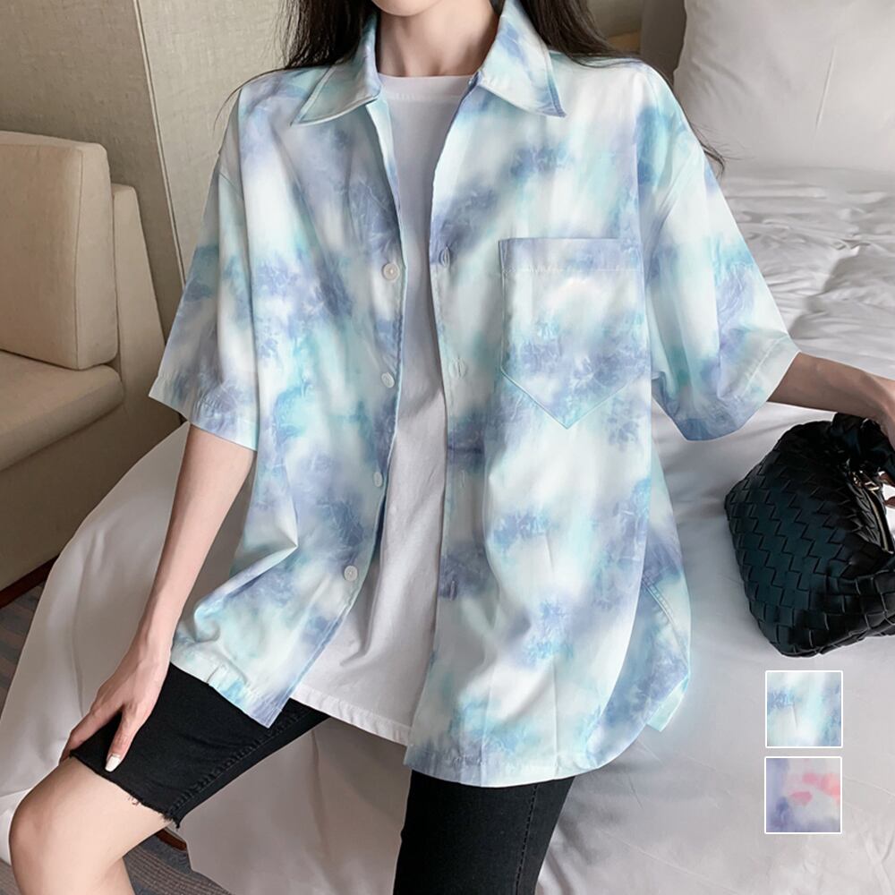 オーバーサイズ 半袖シャツ 絞り染め クールトップス ゆったり サマーカーディガン長袖 体型カバーシャツブラウス 羽織り