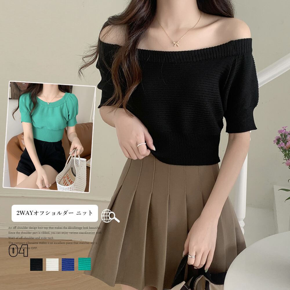 2WAYオフショルダーニットトップス無地