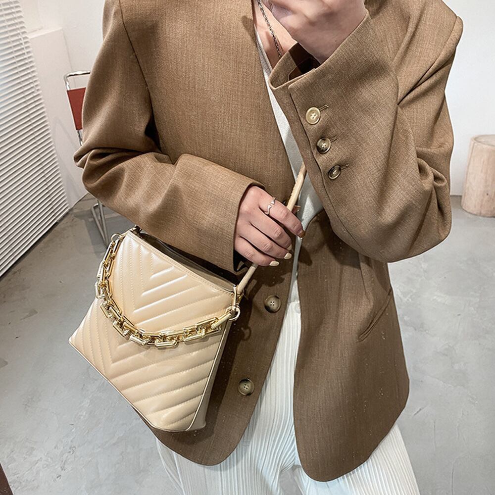 バッグ チェーン付き ハンドバッグ 小さめ 斜めかけ鞄 可愛い 通勤通学 スクエアバッグ ファスナー