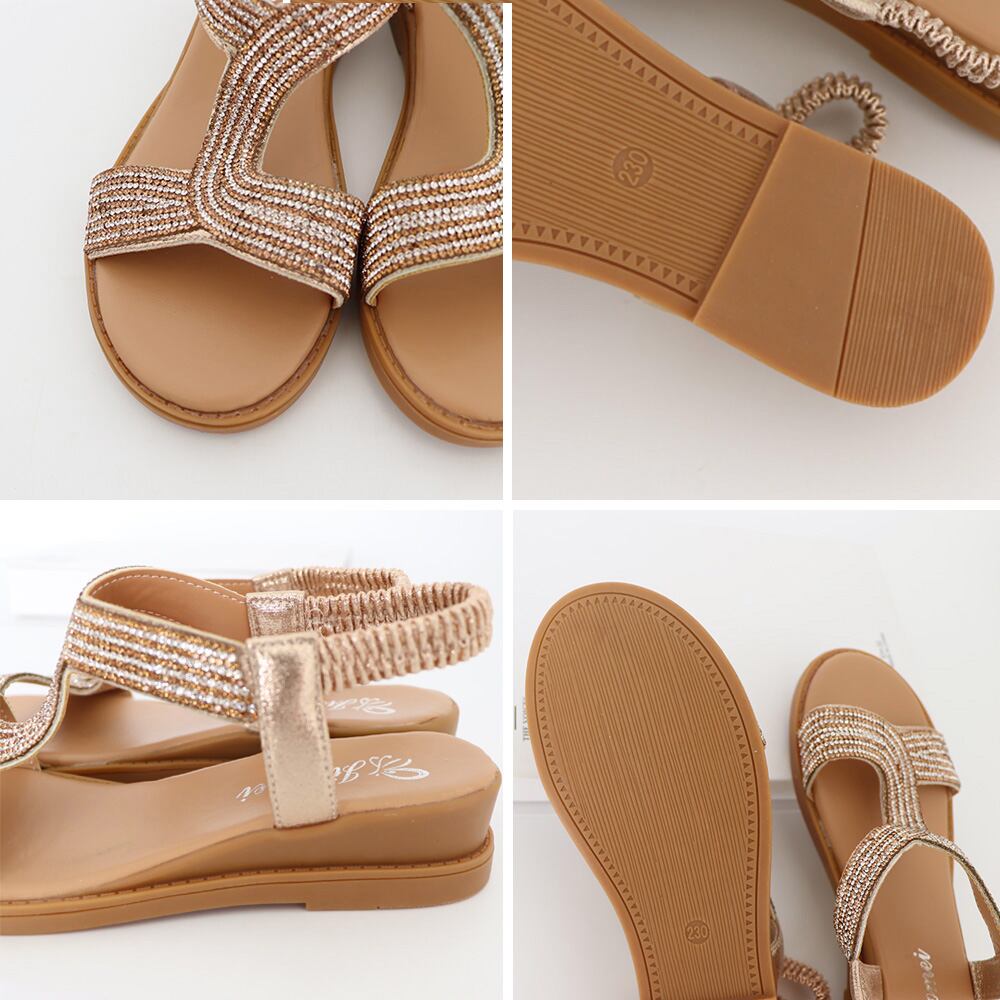 暑い季節にピッタリな、キラキラ・ラインストーンでデコレーションされたストラップサンダル
