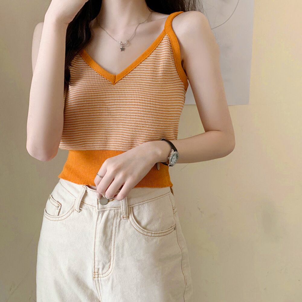 レディース タンクトップ へそ出し サマーニット ノースリーブ インナー 重ね着 ニットトップス かわいい ニットキャミ