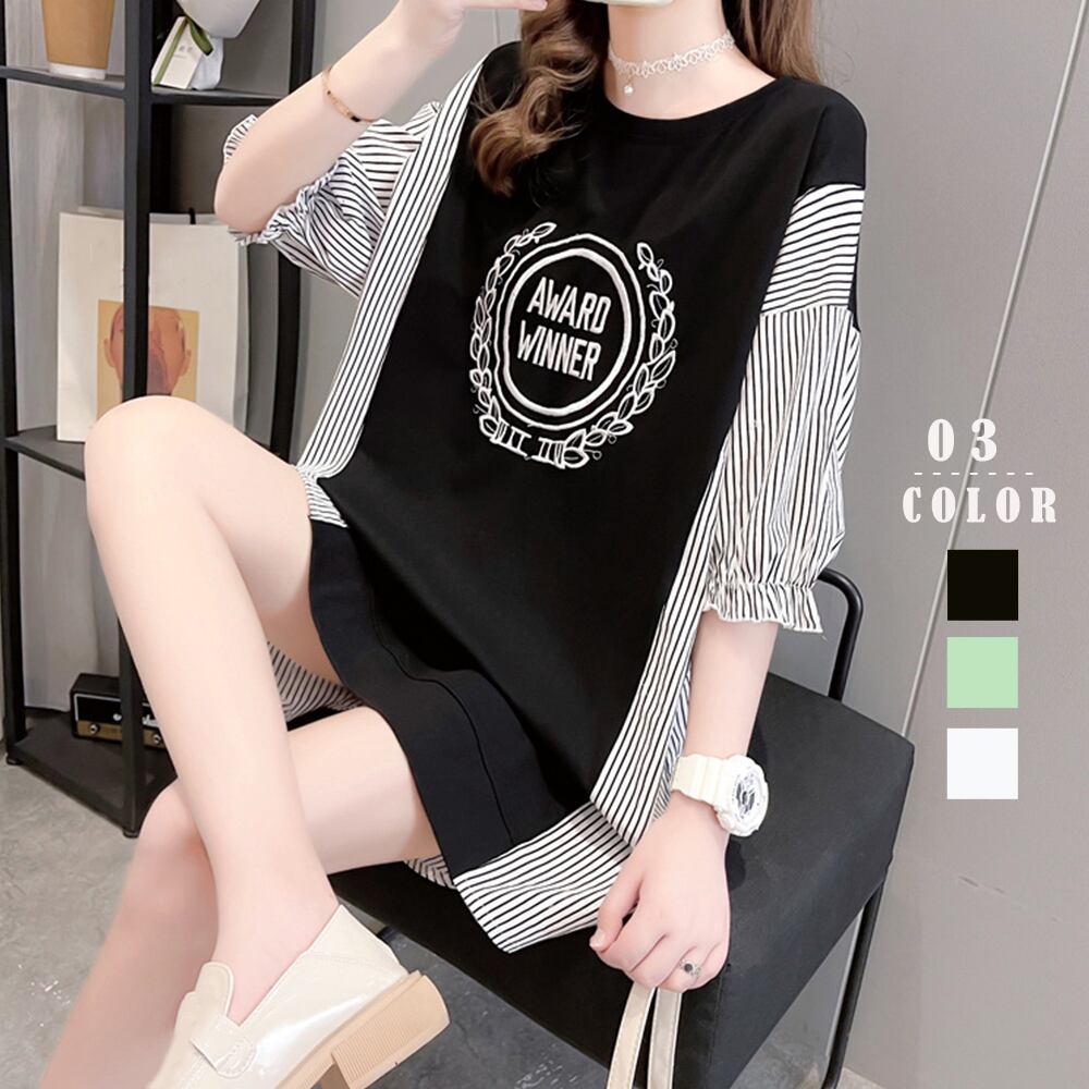 ロゴ チュニック 夏ロングTシャツ 半袖