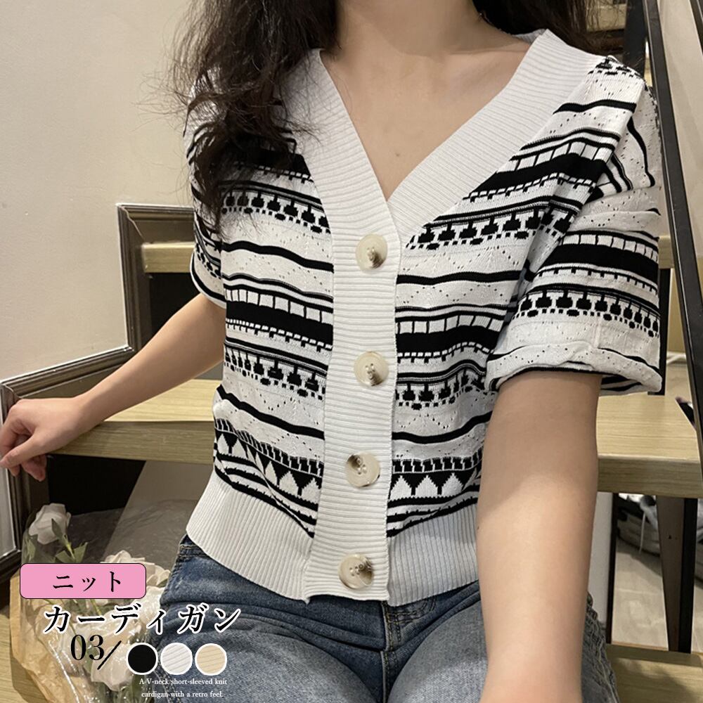 レトロ感が溢れるVネック半袖のニットカーディガン
