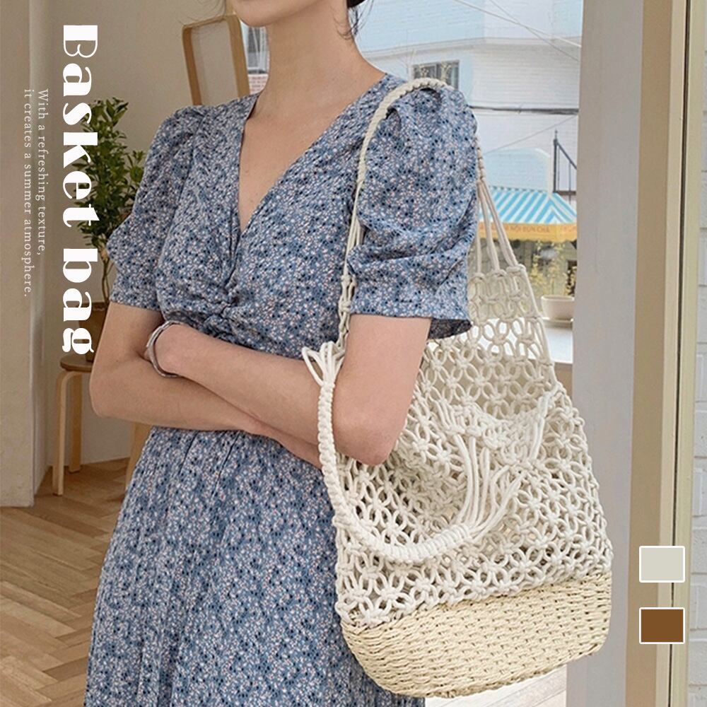 かごバッグ 夏 透かし編み バケツバッグ