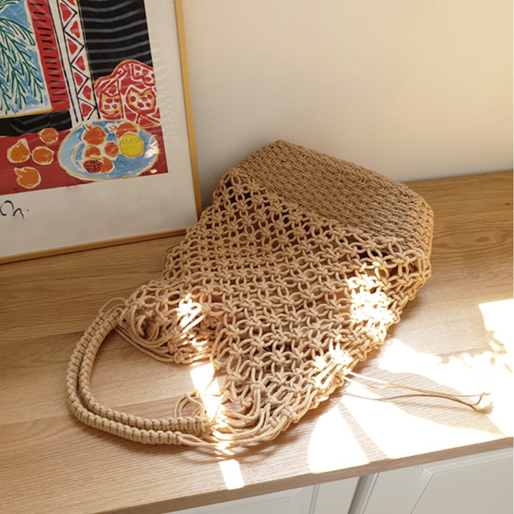 フィッシュネットのように編み上げたかごバッグ