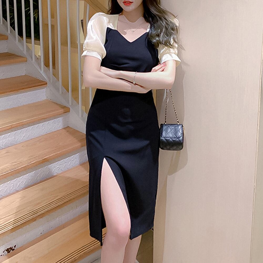 タイトワンピース黒 スリットワンピース 結婚式ドレス韓国風
