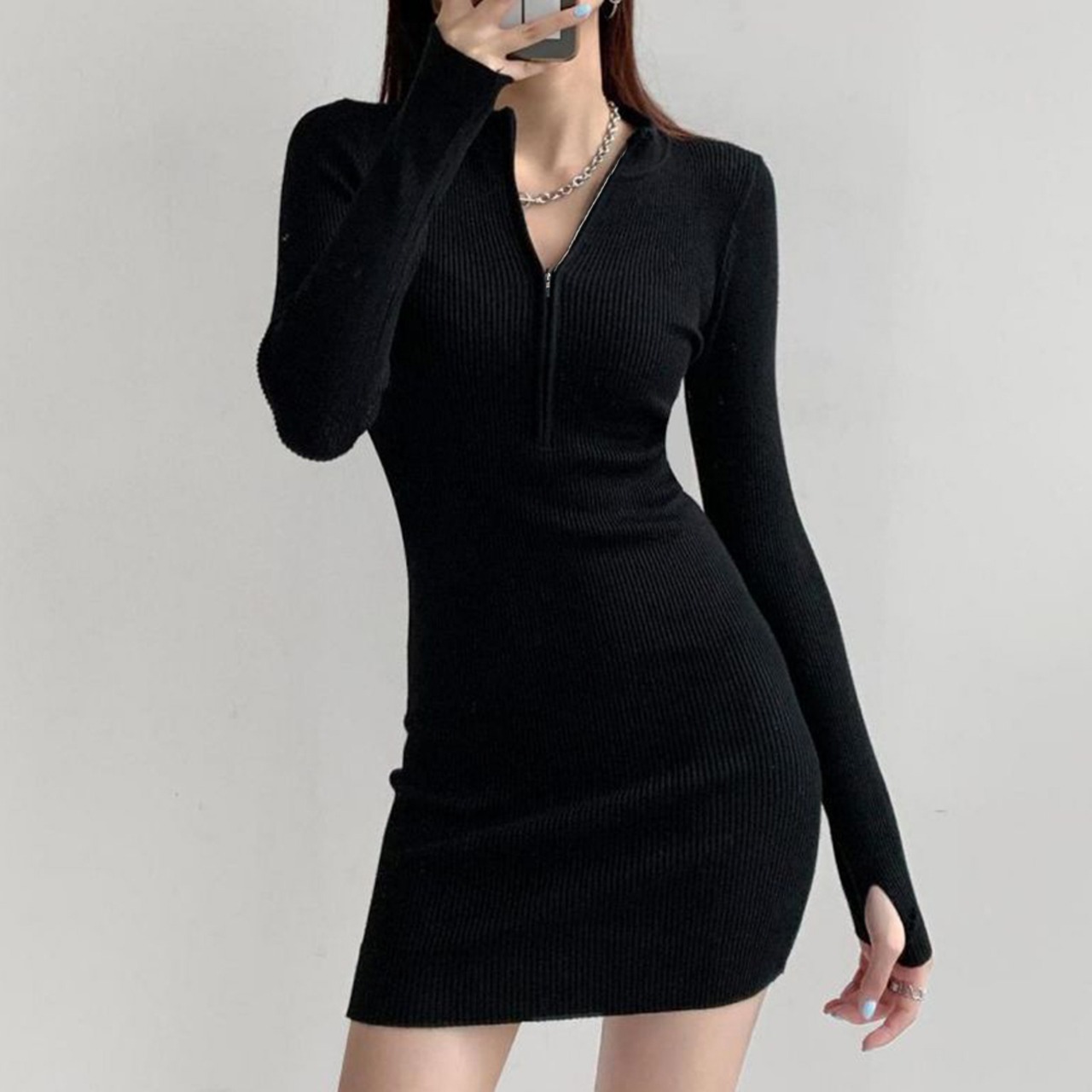 タイトワンピース 長袖ワンピース ショート丈ワンピ