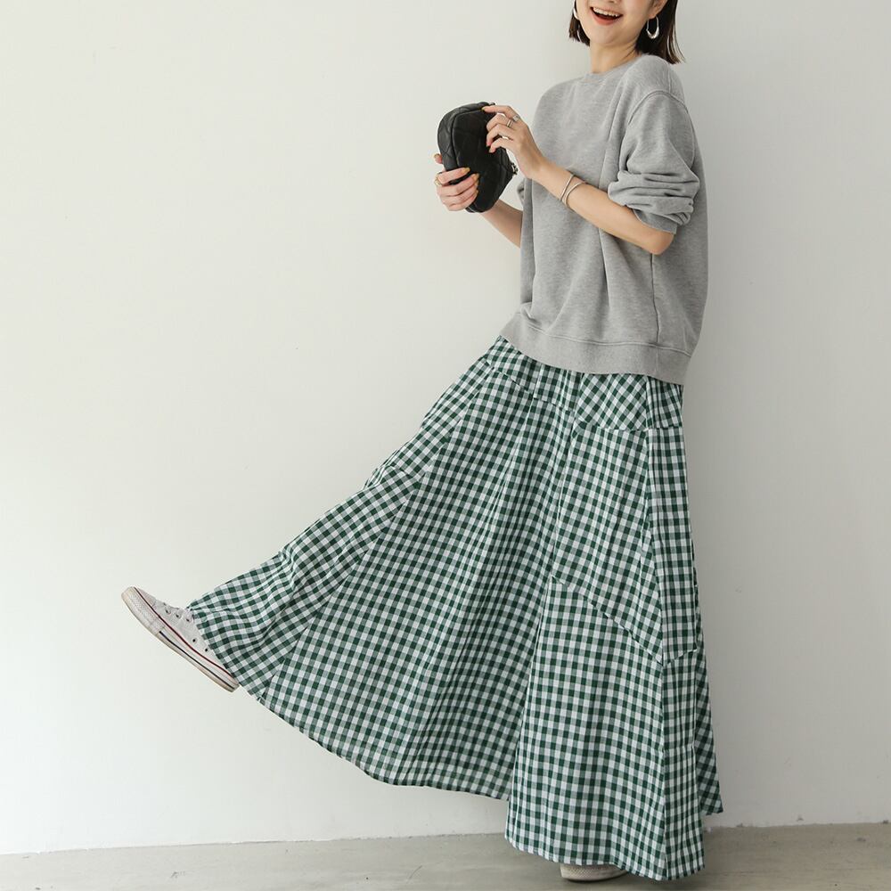 爽やかなギンガムチェックが目を惹くマキシ丈スカート