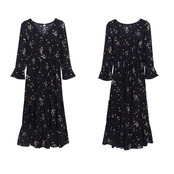 レディース 春秋夏 花柄カシュクールワンピ 韓国風Vネック オルチャン フレアワンピース Aライン ハイウエストきれいめ