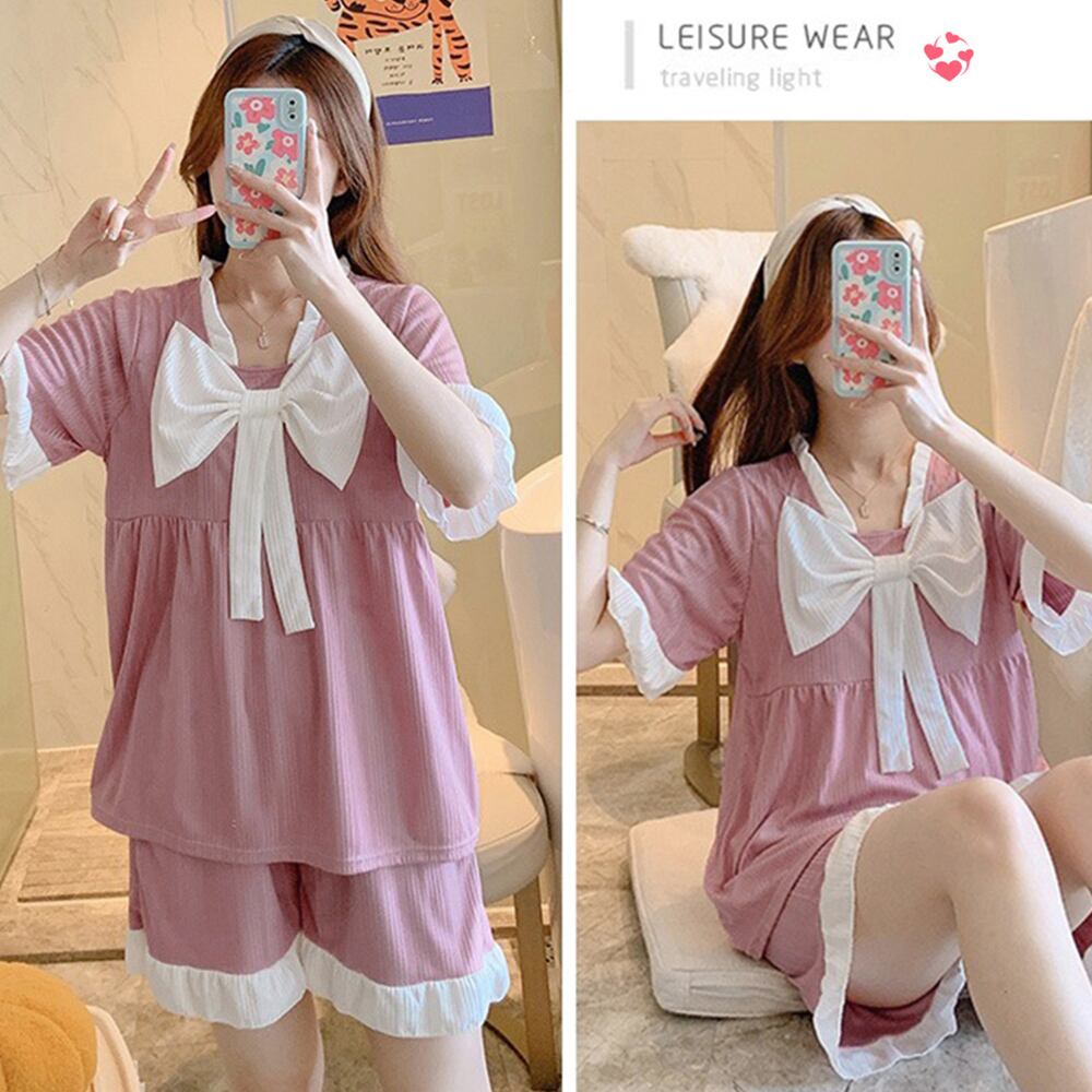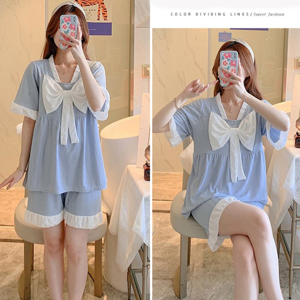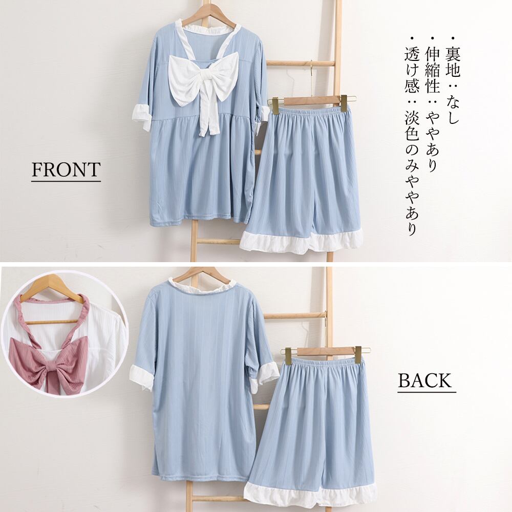 楽ちんパジャマ女性 バイカラー半ズボン ハーフパンツフリル