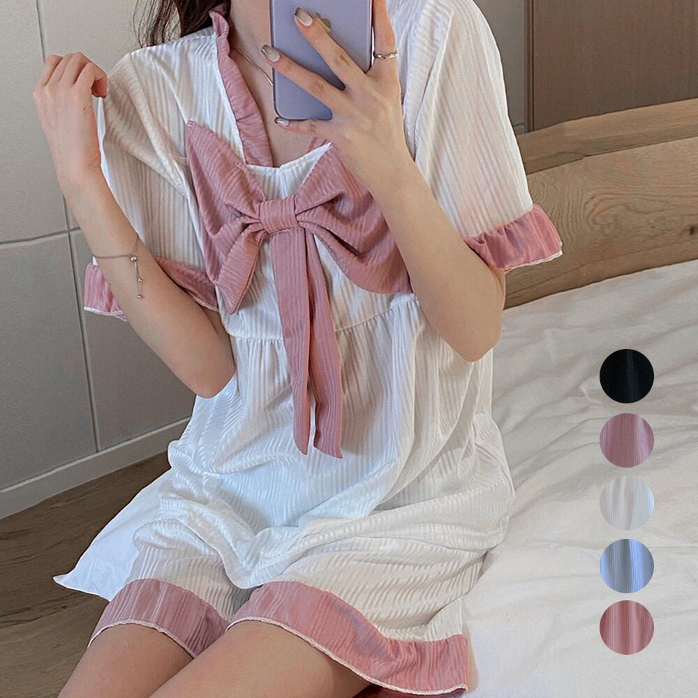 フロントに大きなリボンが付いたデザインで甘い雰囲気をアップ