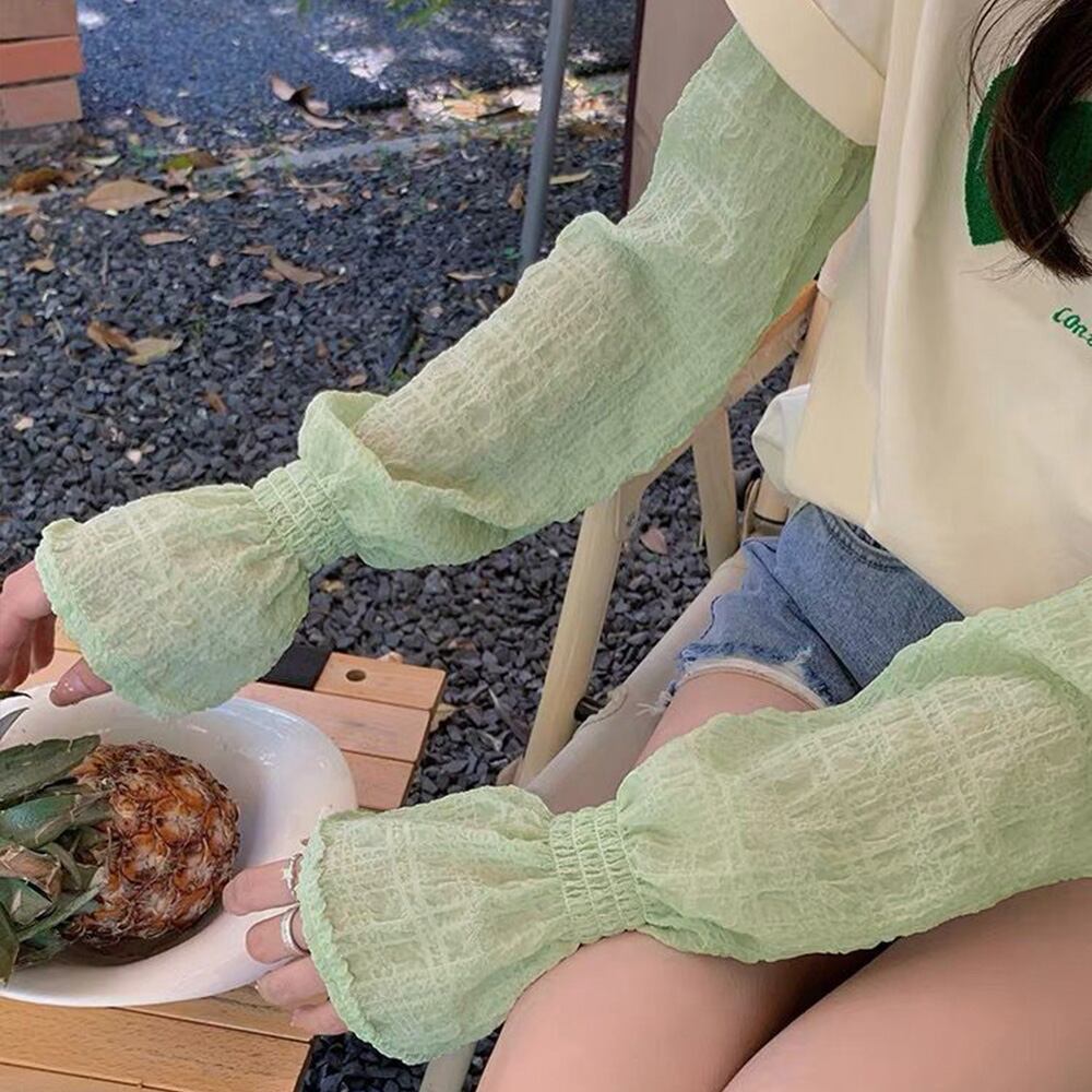 レディース 涼しい 腕カバー 冷感 シフォン 冰袖 ロング 腕カバー 薄手 可愛い きれいめ