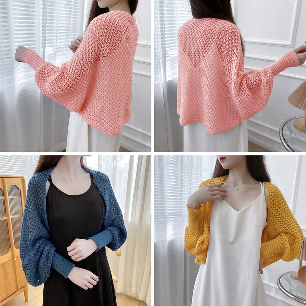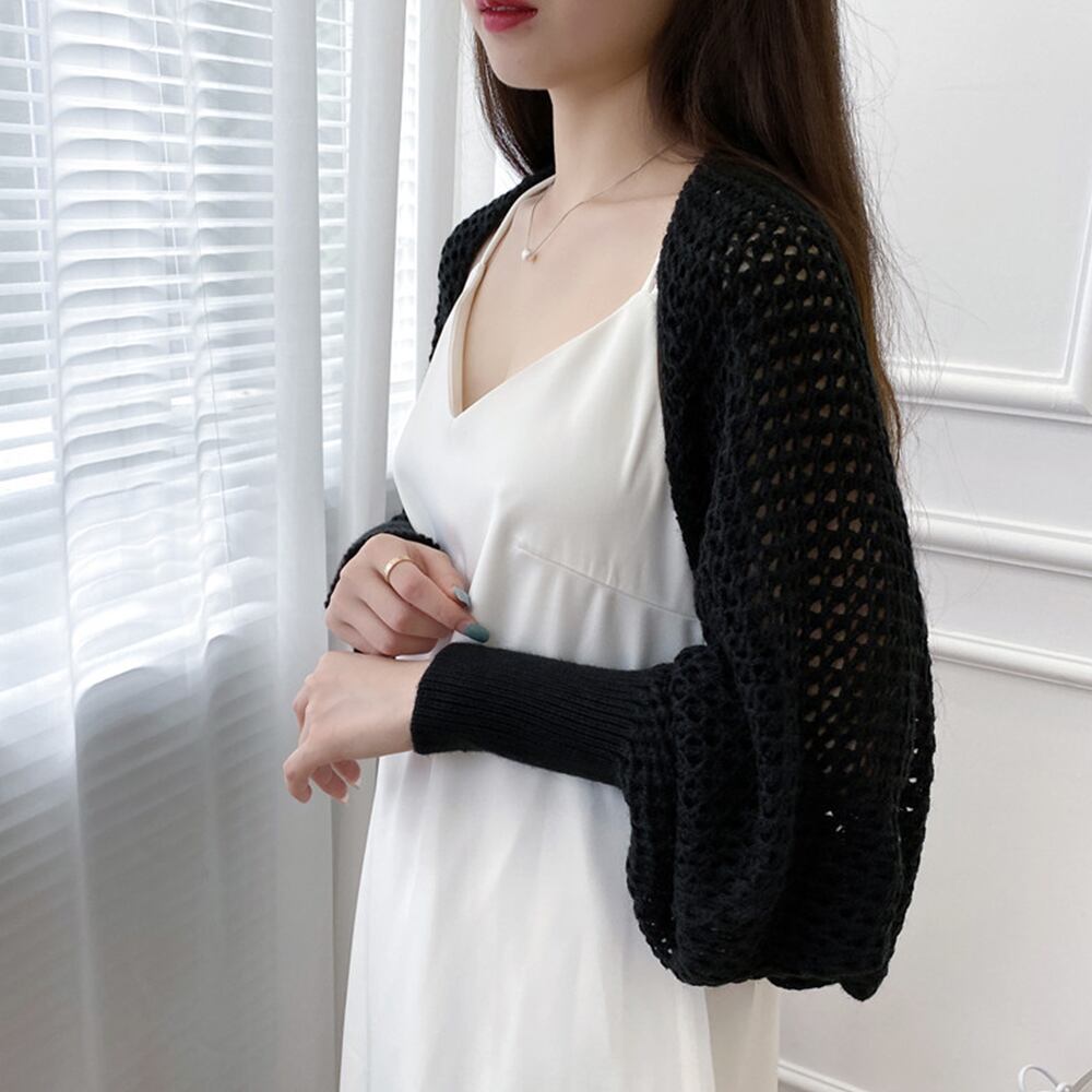 ニット羽織り ボレロカーデ 透かし編み ニットトップス 無地 大人カジュアル ライトアウター 冷房対策 長袖 春秋 韓国