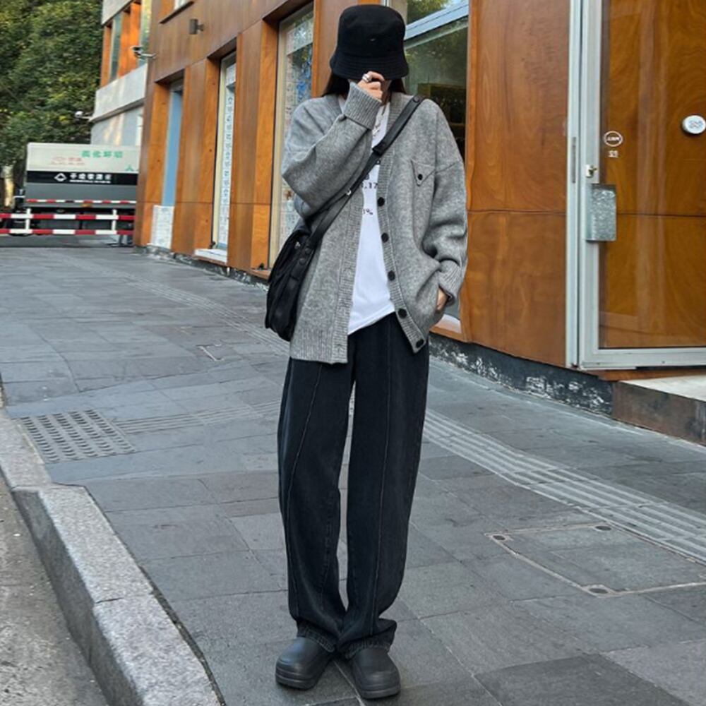 ゆったり ニットカーデ 無地長袖 ニットソー vネック 前開き 女子ニット 人気アイテムトップス 体型カバー羽織 韓国風