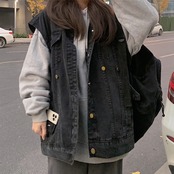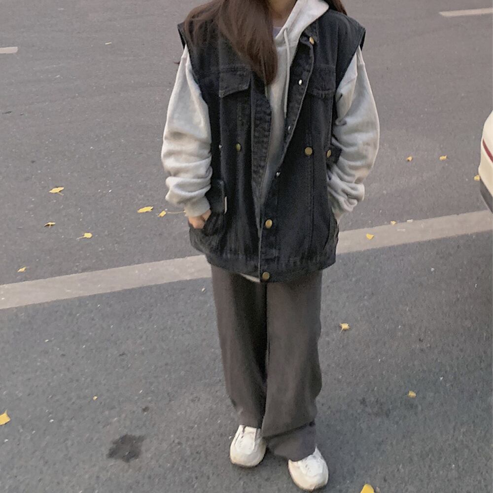 ゆったり ノースリーブ デニムジャケット 袖なし Gジャン カジュアル 春秋冬アウターオルチャン オーバーサイズトップス