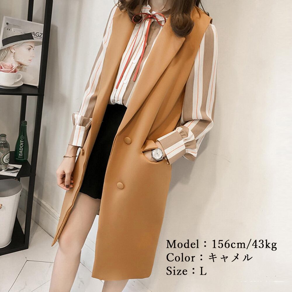 トレンチベスト レイヤード オフィスカジュアル 通勤 袖なしアウター チョッキ 着回しテーラードベスト スーツベスト