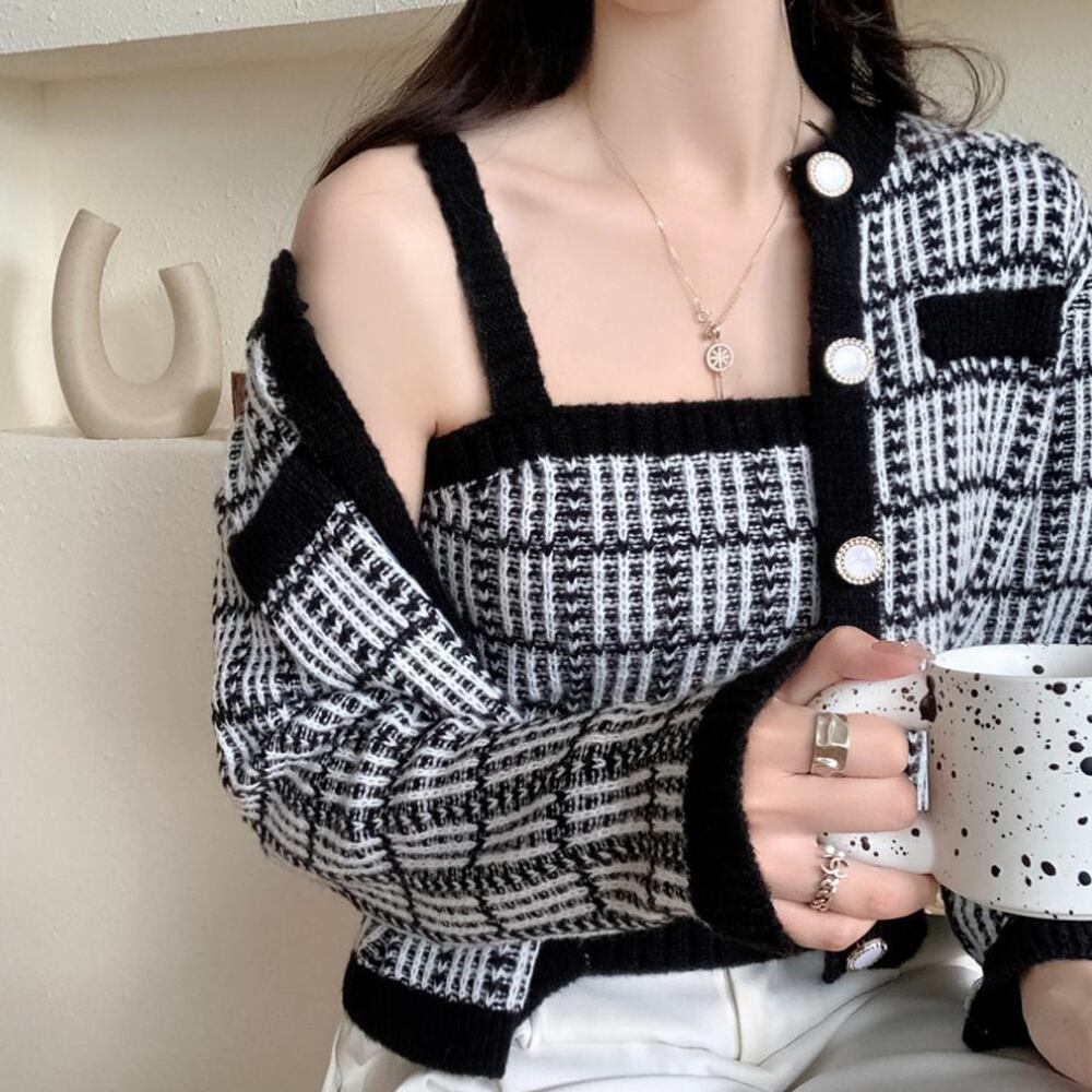 ショート丈 ニットトップス レディース セットアップ 前開き カーディガン おしゃれ キャミソール セクシー ニットソー