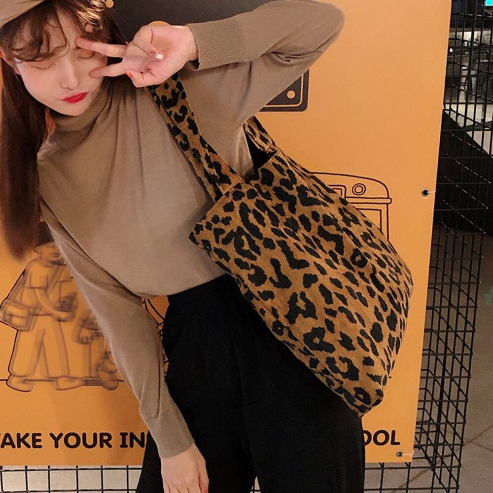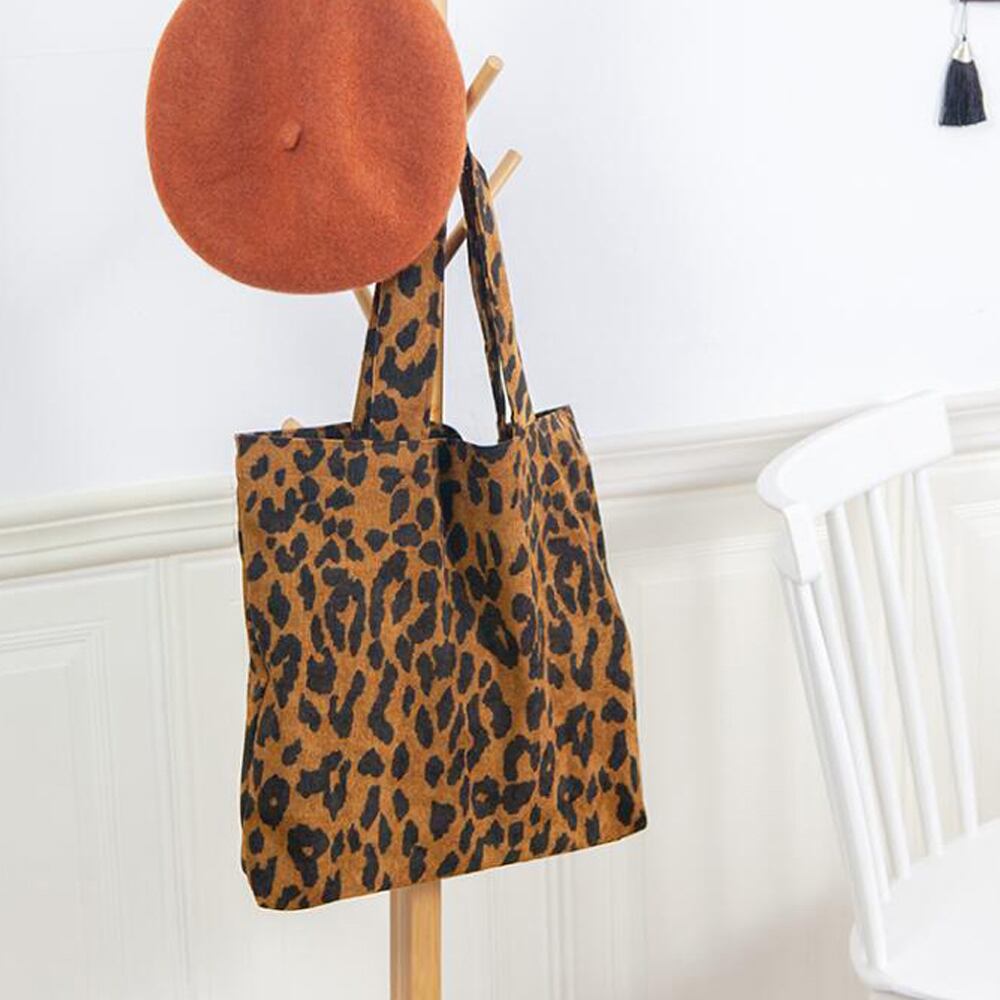 可愛い レオパード柄 肩掛けバッグ A4 アニマル柄手提げかばん 秋冬 韓国 コーデュロイカバン 買い物 オルチャン