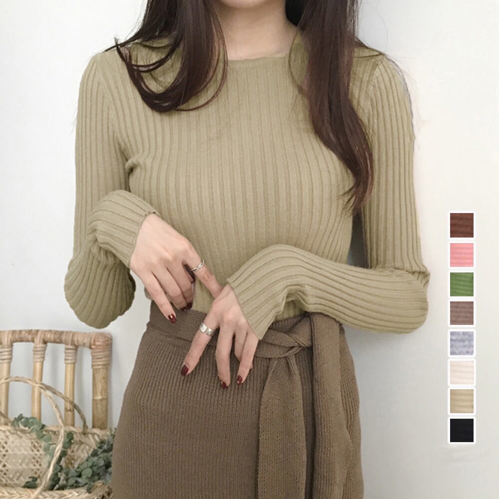 コーディネートを選ばないシンプルなリブニットトップス