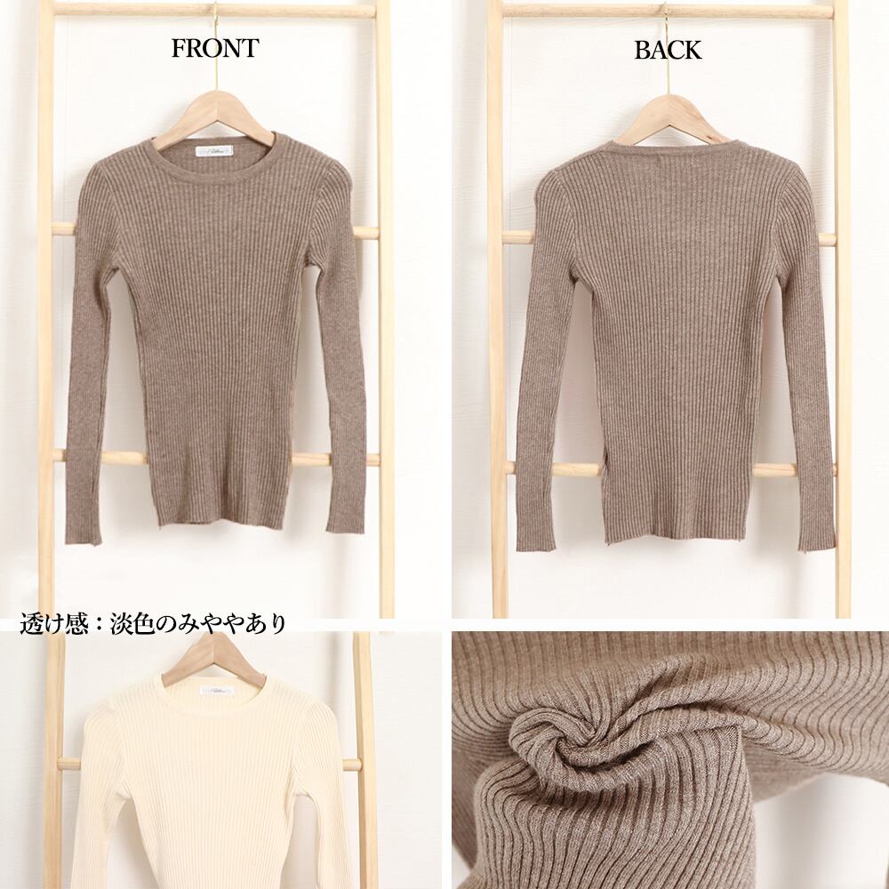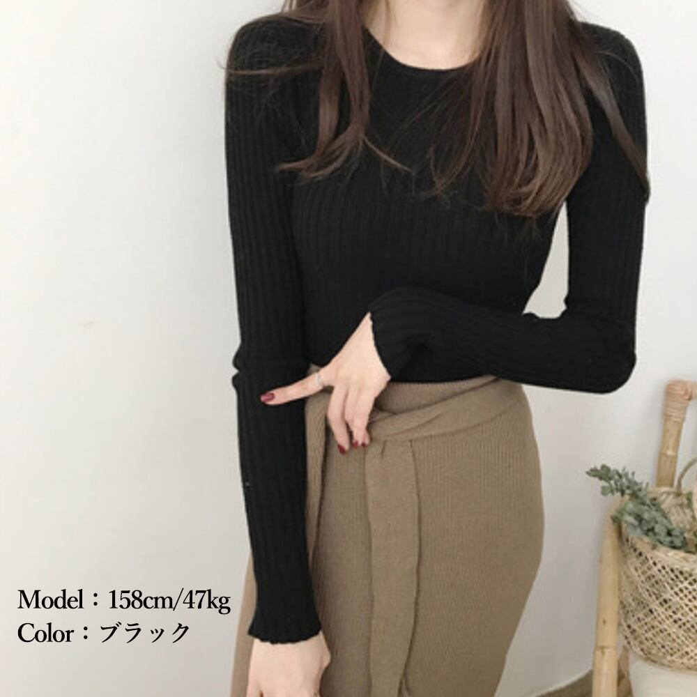 太めリブタイトニット クルーネック セーター リブ編み 長袖 ストレッチ 普段着 ニットウェア 柔らか プルオーバー 冬