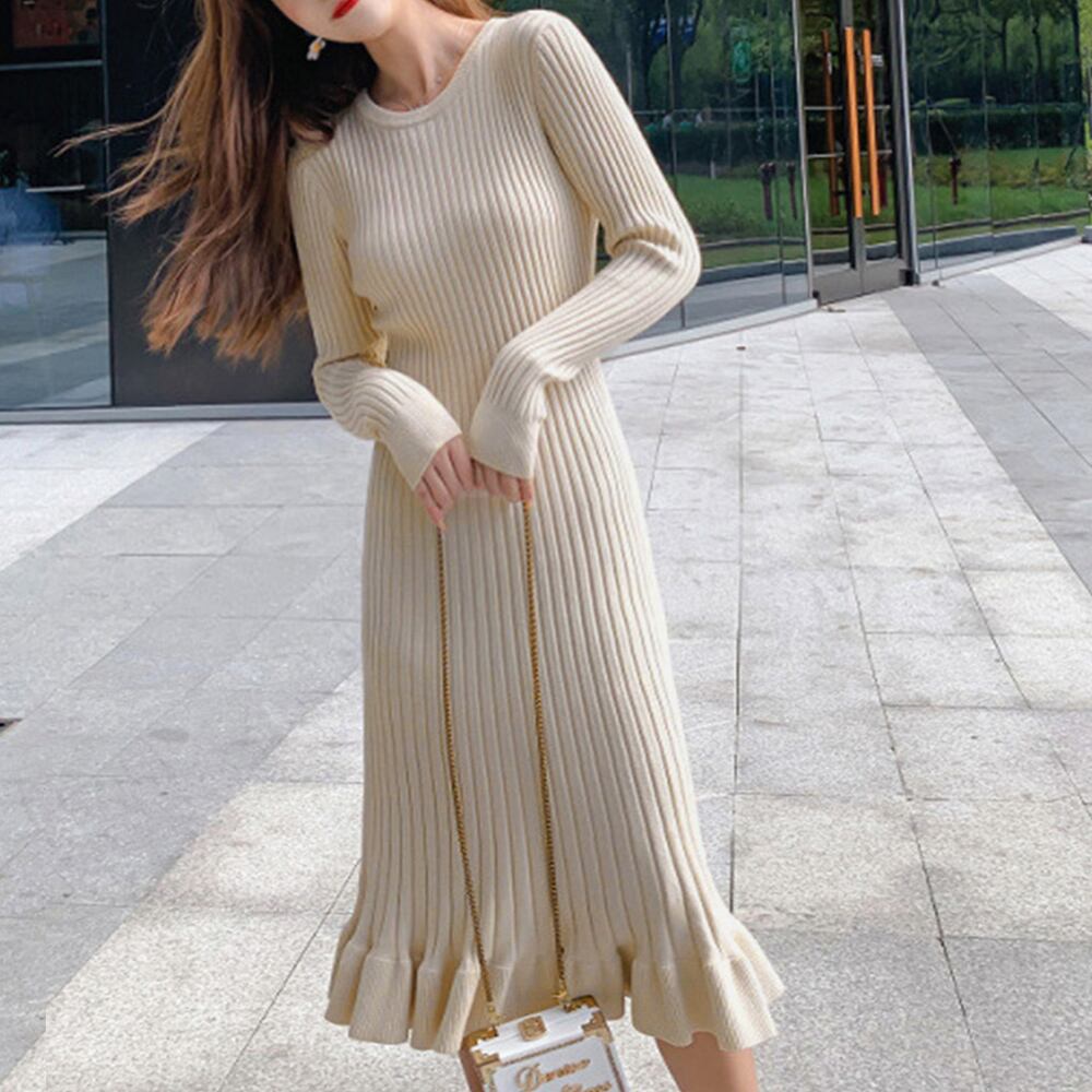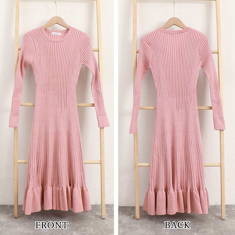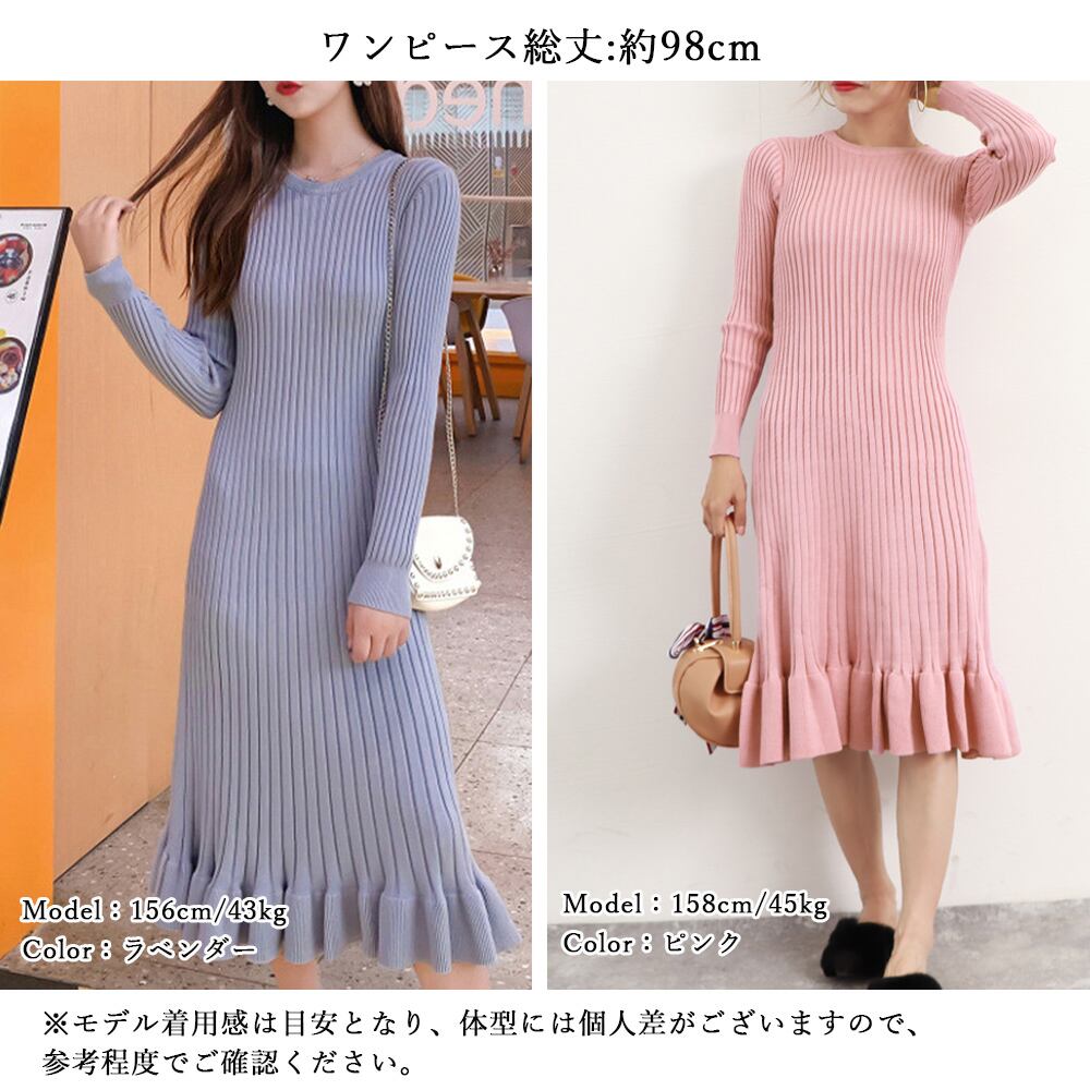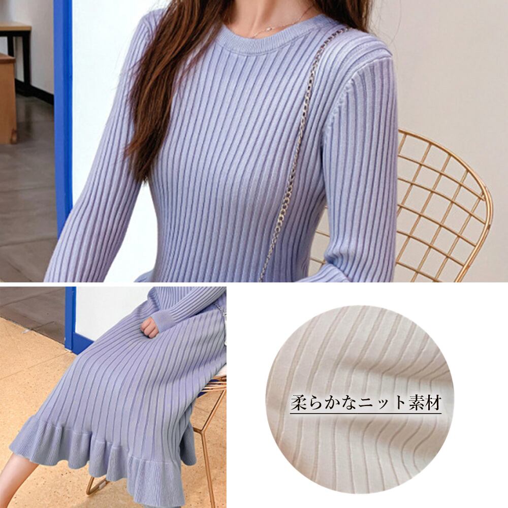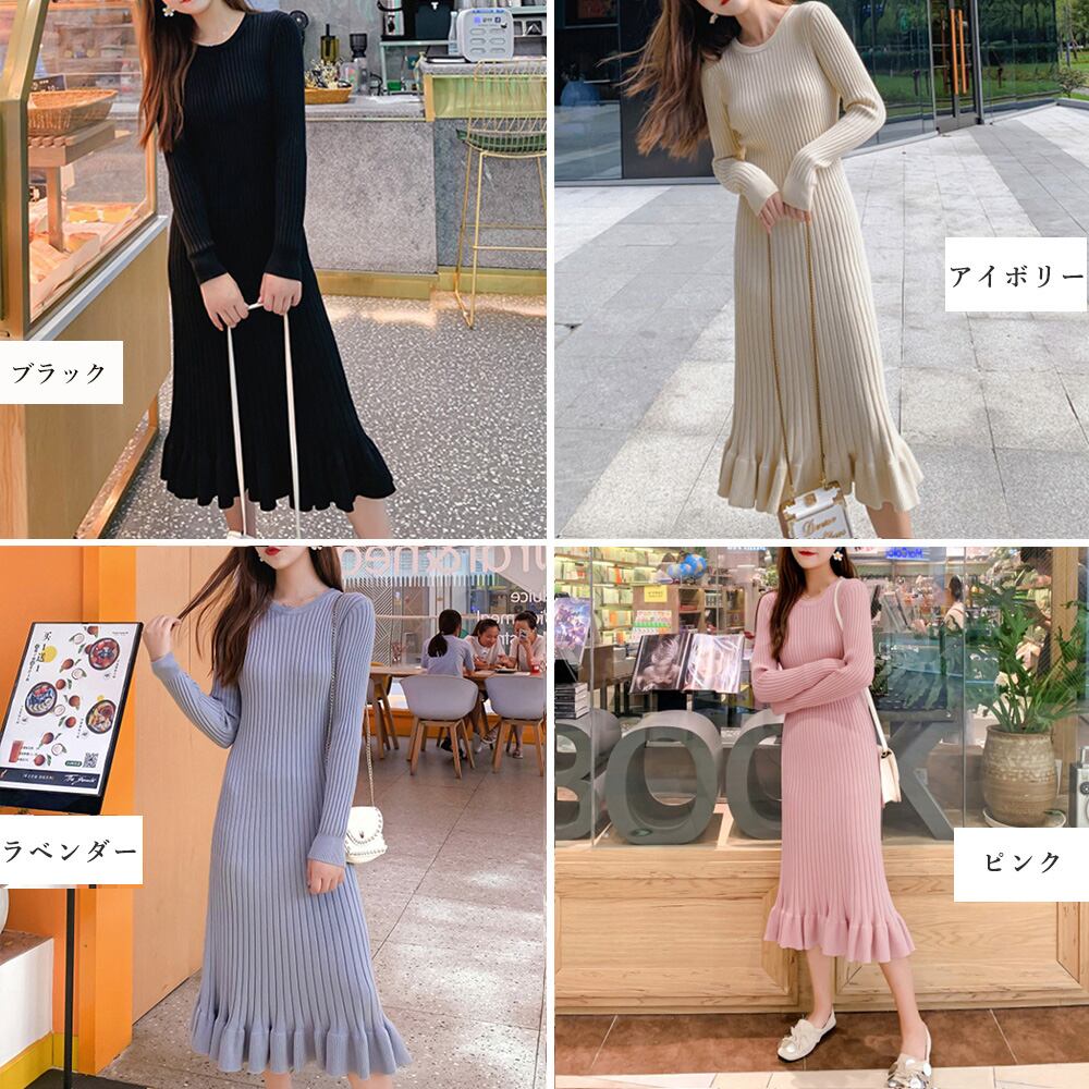 レディース リブニット マーメイドワンピース 韓国 きれいめ 長袖 ロングワンピ フェミニン フィット感 秋冬 暖かい