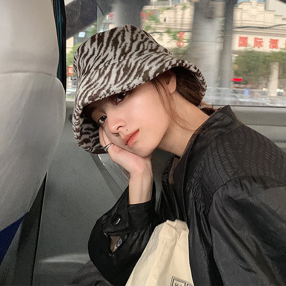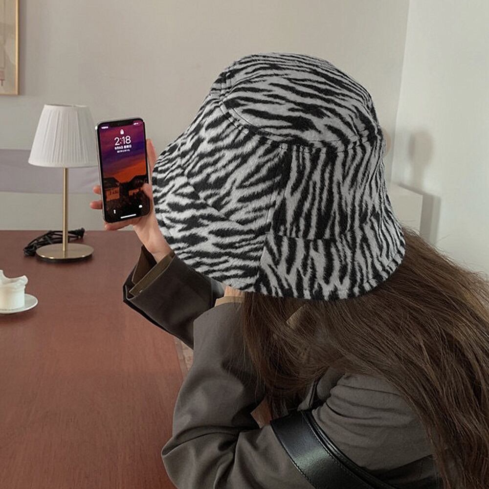 暖かい素材のゼブラ柄バケットハットです。