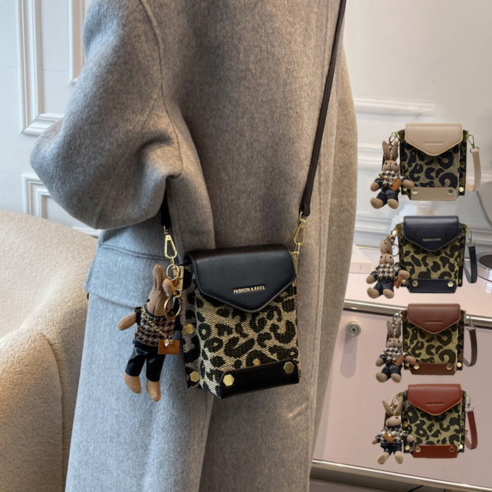 レオパード柄 斜めがけバッグ キーホルダー付き スマホポシェット おしゃれ かわいい 小さめ鞄 ミニバッグ ポシェット