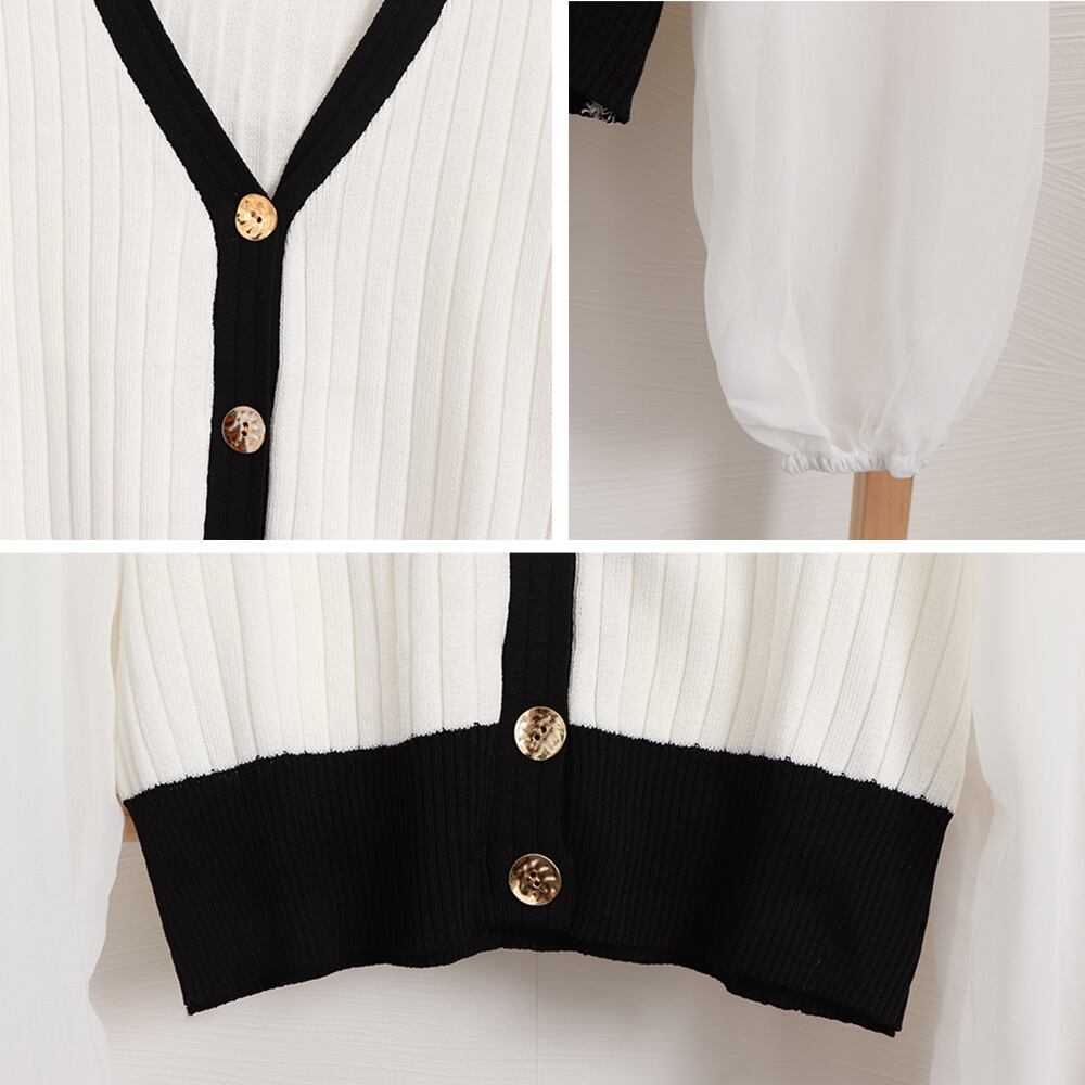 シフォンニット切り替え リブニット Vネック 女性 長袖 異素材ニットウェア ストレッチ シースルー	袖 ニットセーター