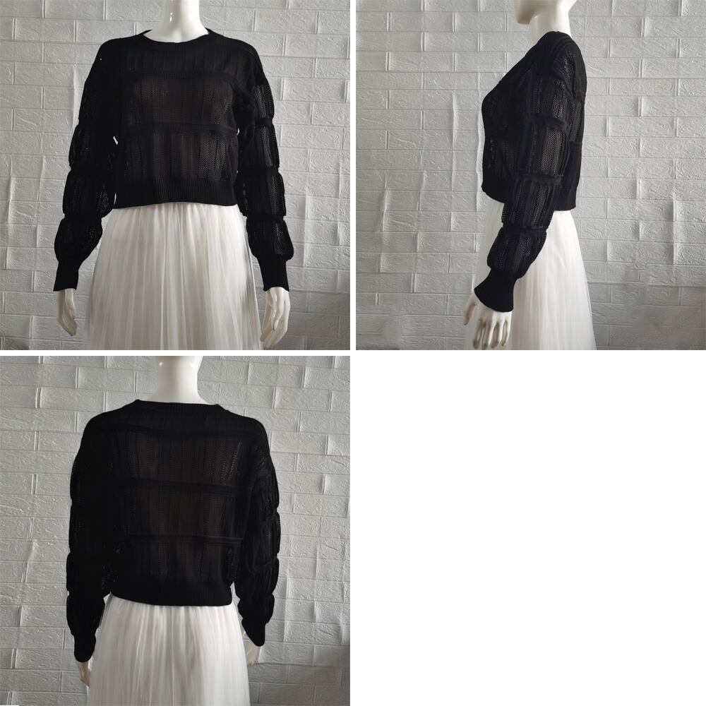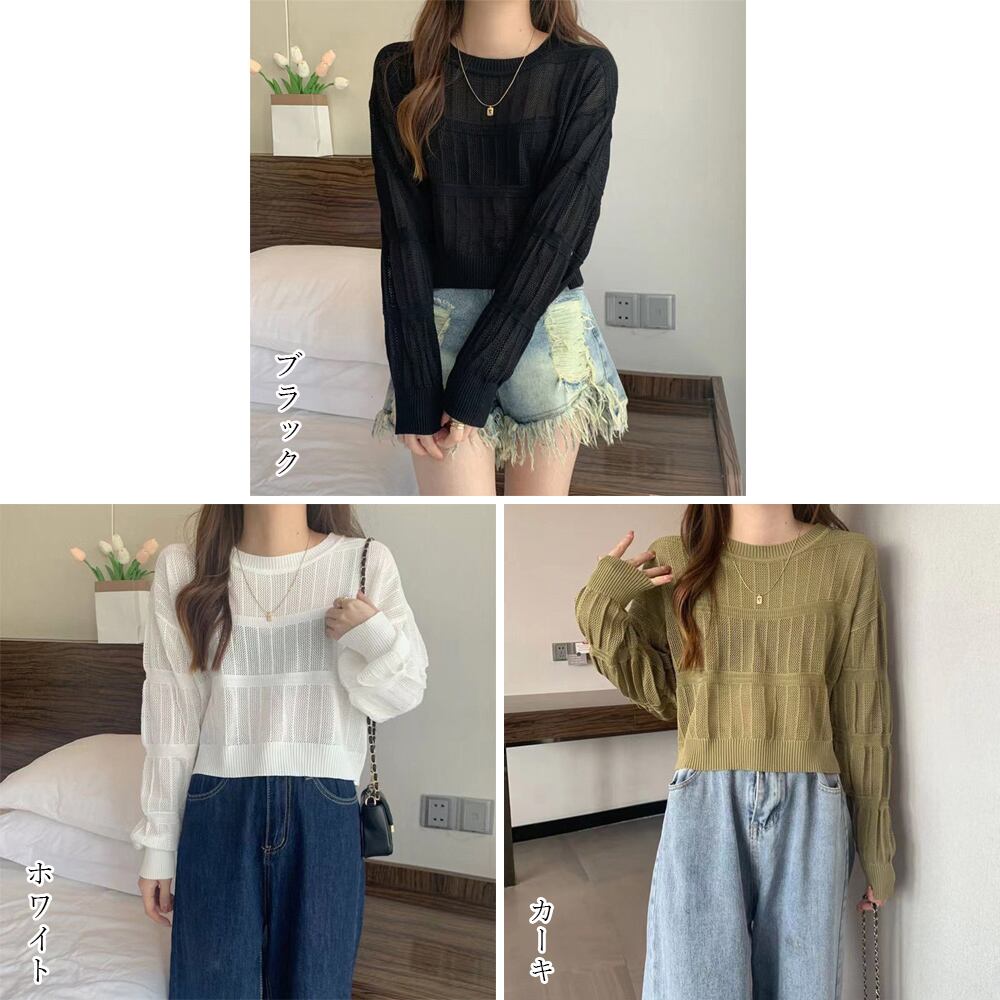 透かし編み 長袖ニットトップス 韓国風