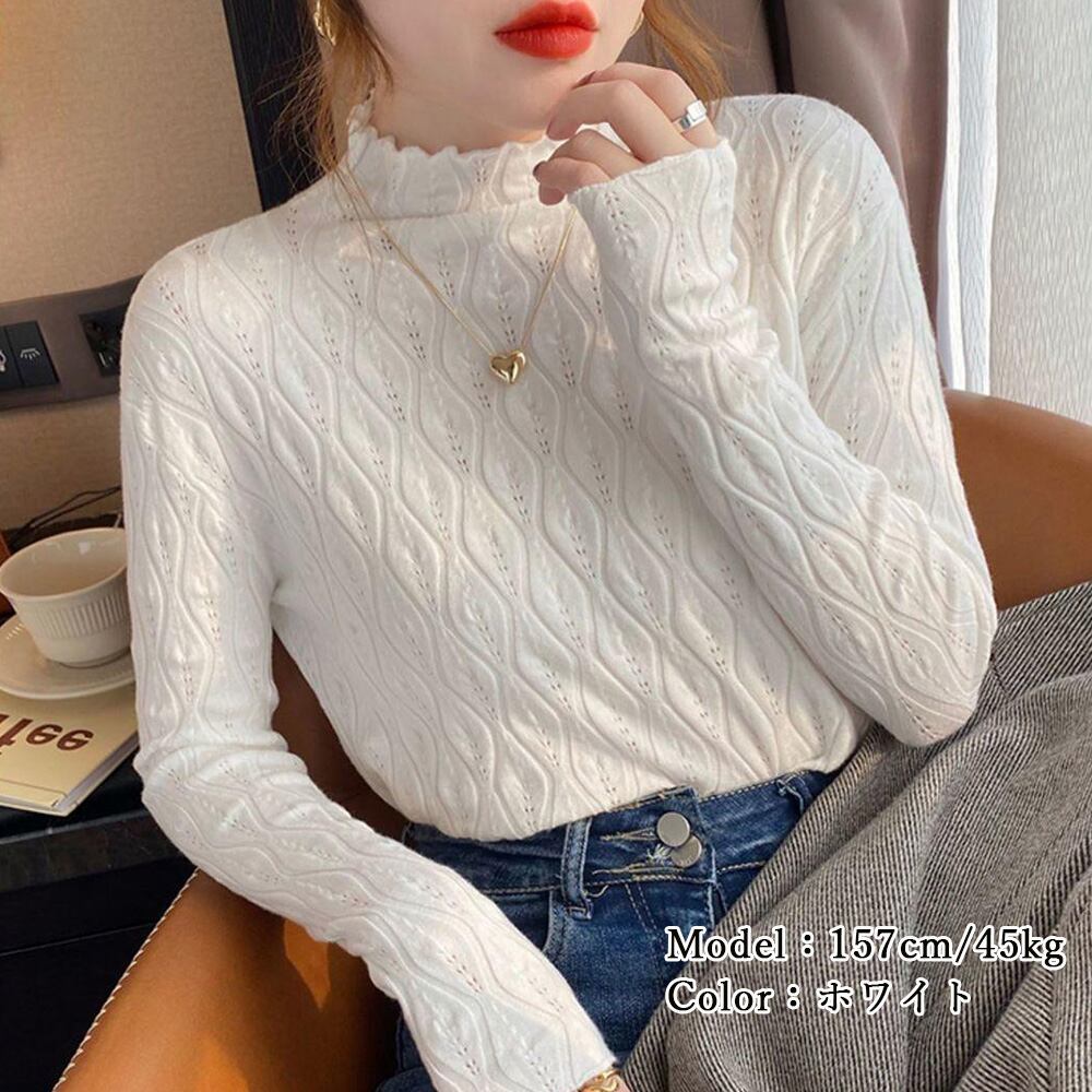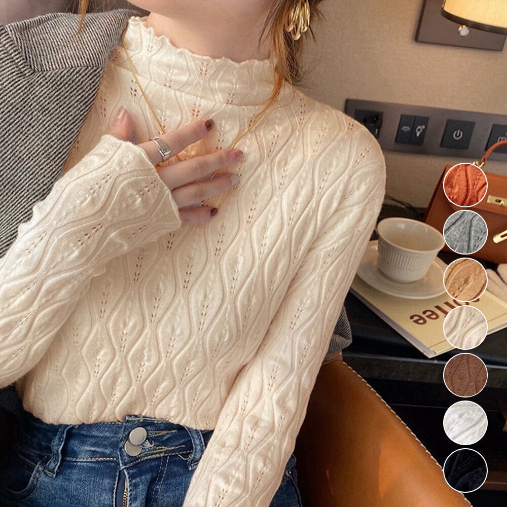 ニットトップス 秋冬プチハイネック 長袖