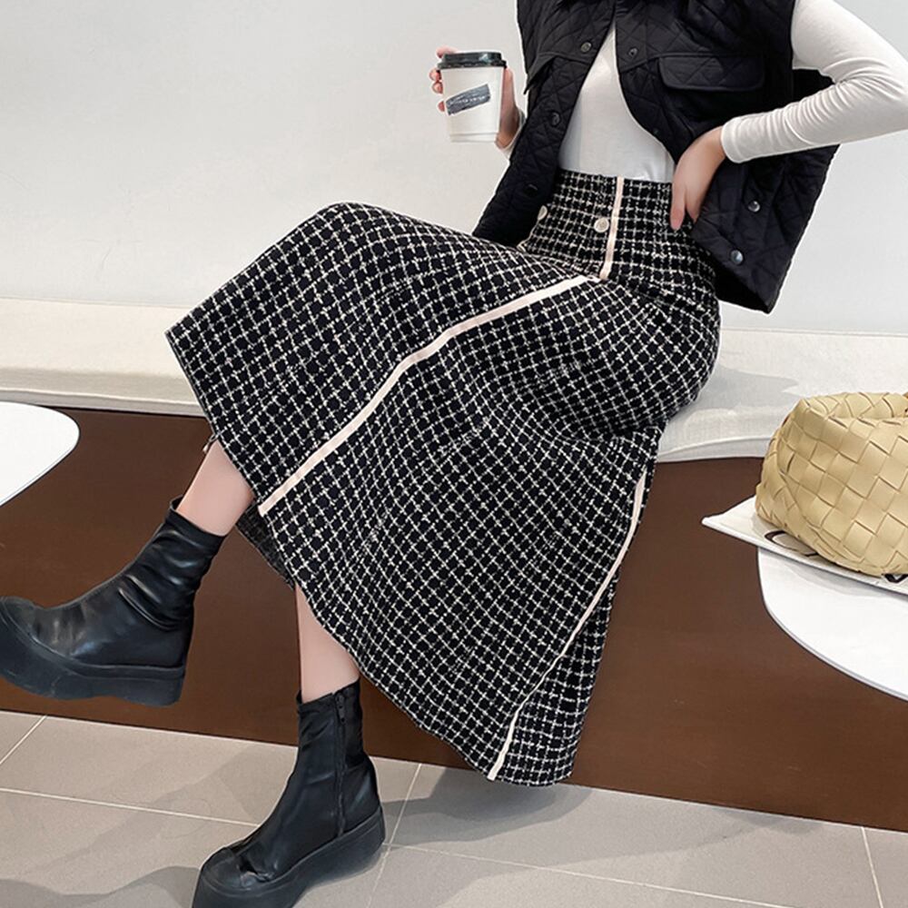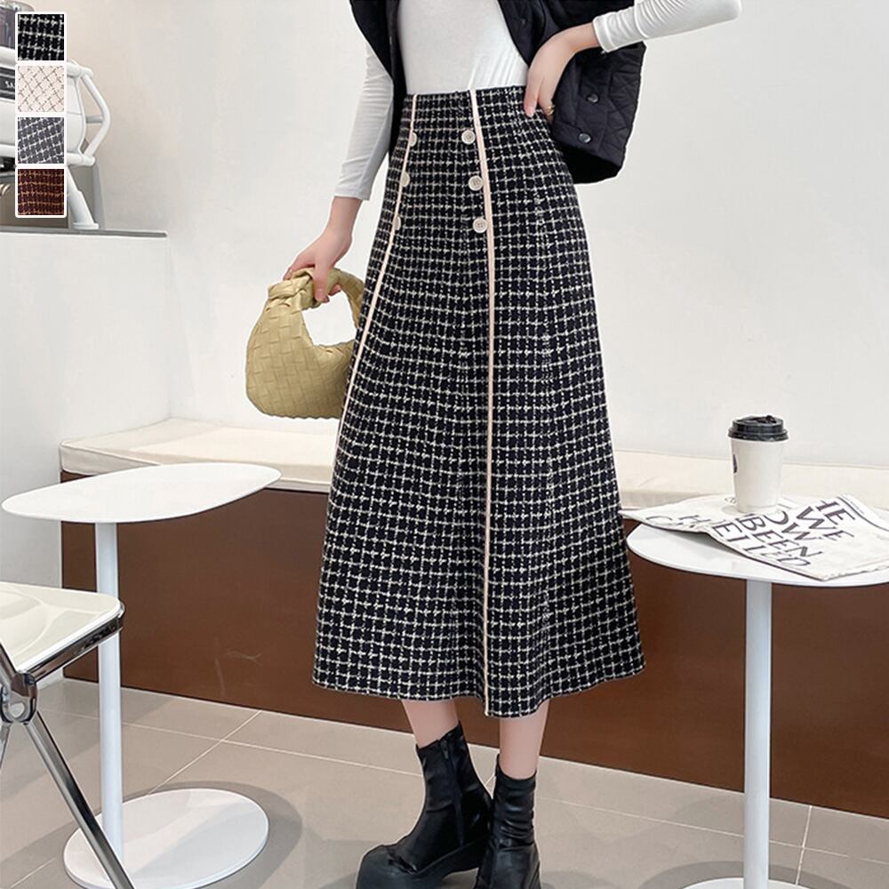 レディース Aラインスカート ボリューム チェック柄体型カバー 着やせフェミニン オフィスカジュアル20代30代きれいめ