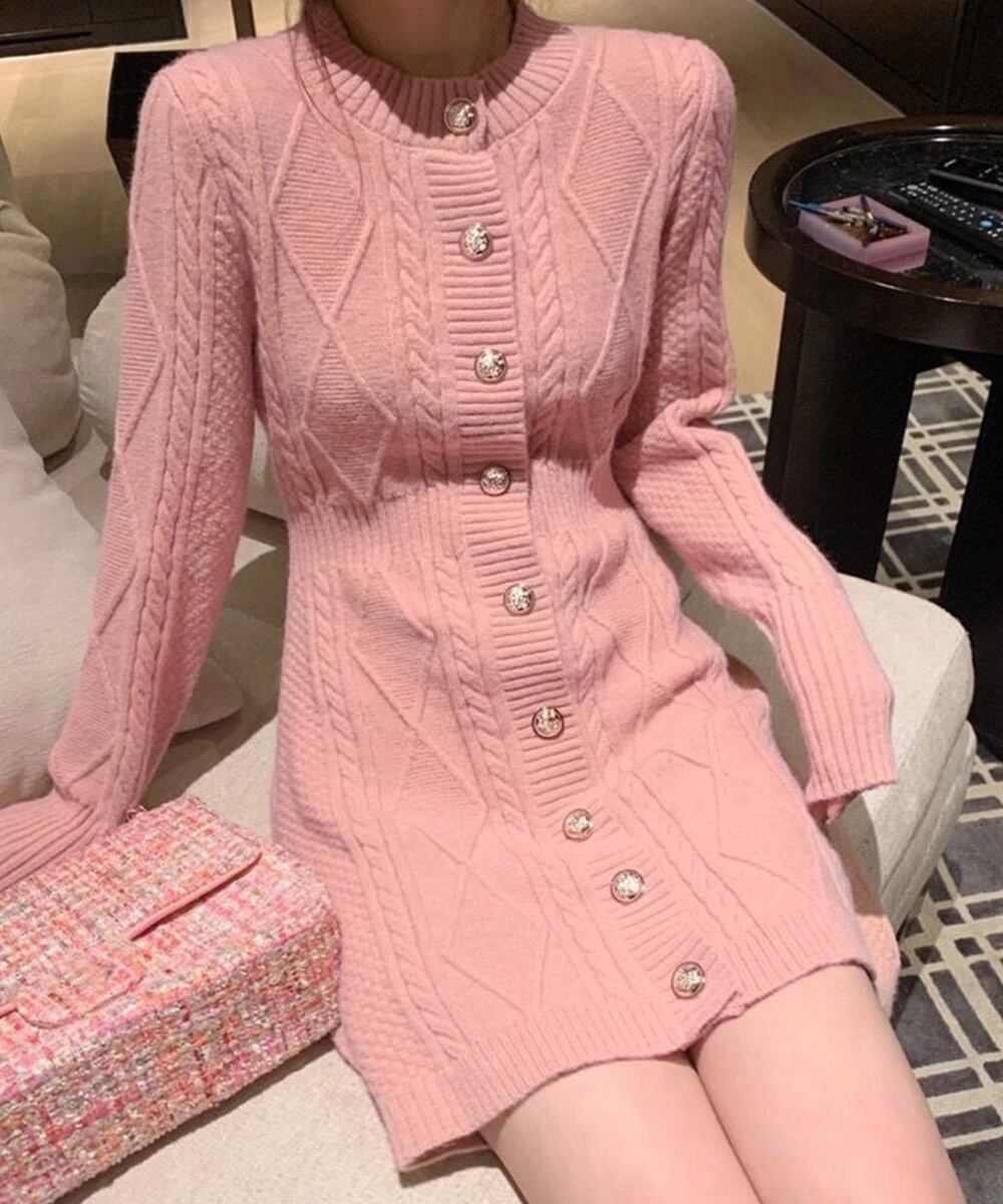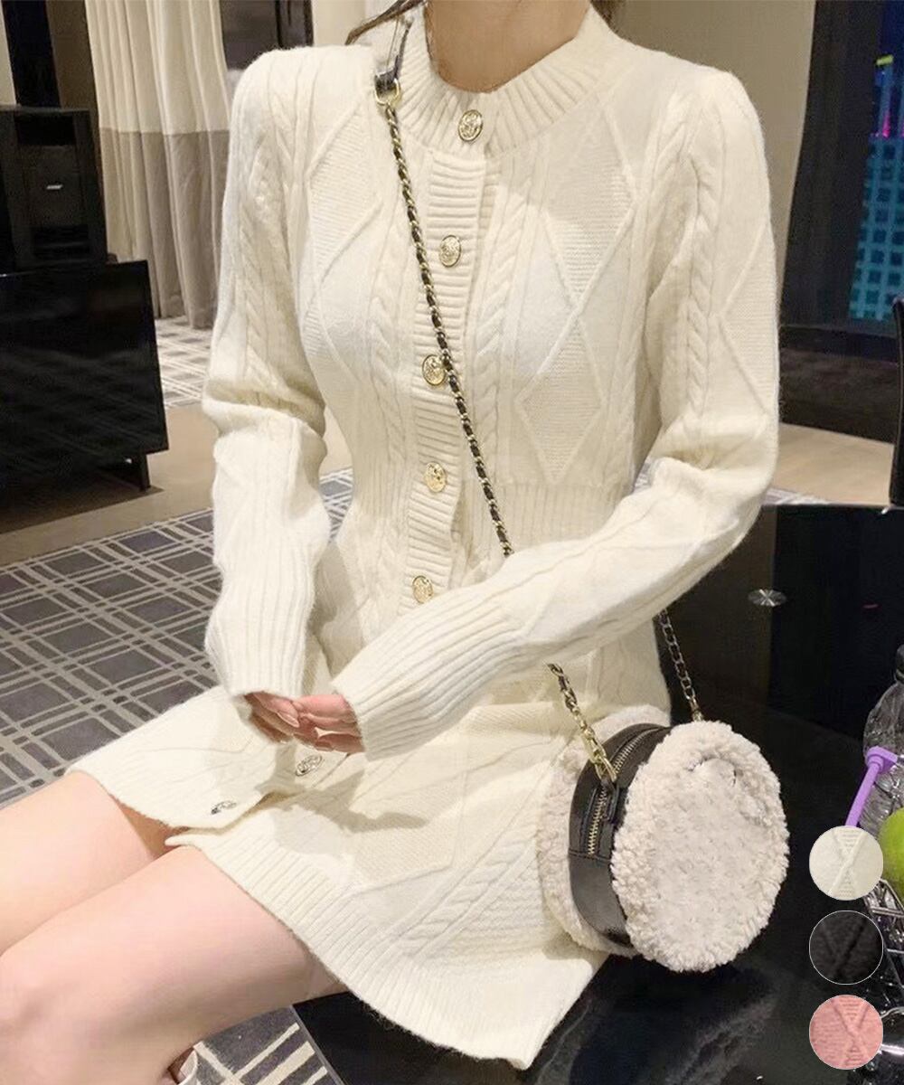 ケーブルニットワンピース ミニ きれいめ