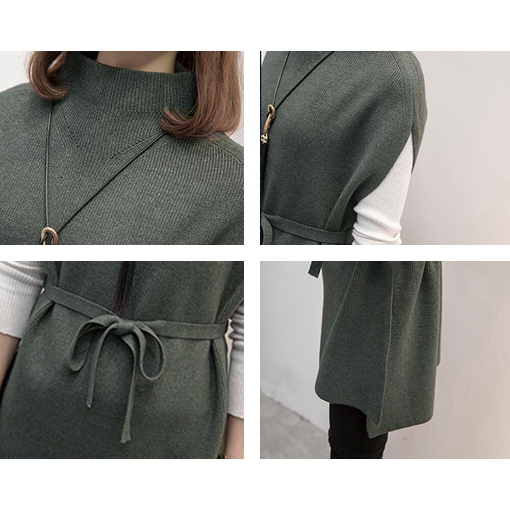 プチハイネック ニットトップス レディース 無地 体型カバー 重ね着 ロングニットベスト 秋冬服 30代40代カジュアル