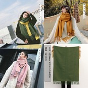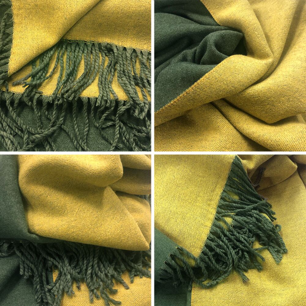 ツートンカラーのリバーシブル仕様なので、巻き方次第で雰囲気が変わり、コーディネートの幅も広がります、その日の気分でアレンジ自在