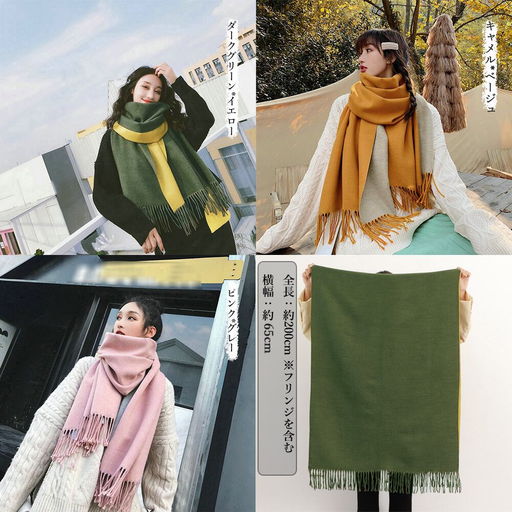 配色マフラー 防寒 マフラープレゼント 両面ストール肩掛け