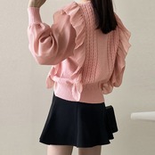 フリルニットトップス レディース 韓国風